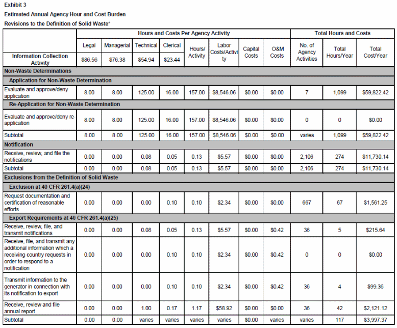 In Sections 1 through 5 of this document, EPA presents a comprehensive description of the information collection requirements in this ICR. In Section 6, EPA estimates the total annual hour and cost burden to respondents associated with these new paperwork requirements. In addition, EPA estimates the total annual burden savings to generators and subsequent handlers for no longer being subject to the existing RCRA information collection requirements for the excluded materials.