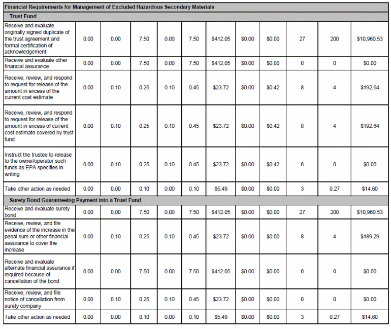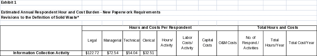 FINANCIAL REQUIREMENTS FOR MANAGEMENT OF EXCLUDED HAZARDOUS SECONDARY MATERIALS (EXHIBIT 1)