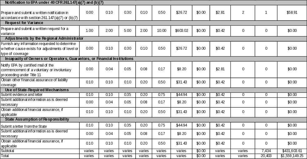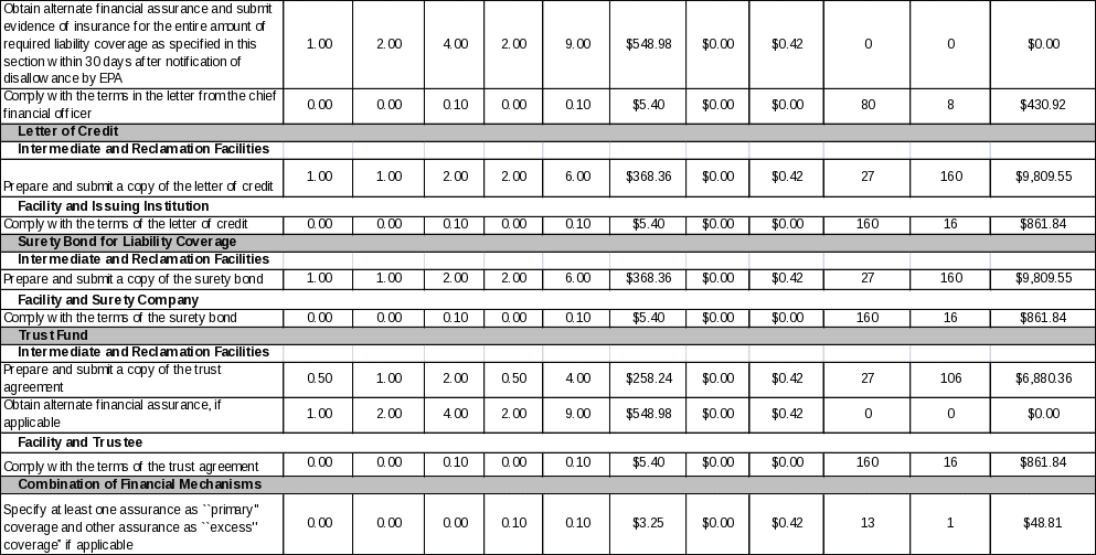 EPA does not expect EPA to make adjustments to the financial assurance levels of any facilities during the three-year life of this ICR. This is reflected in Exhibit 1.