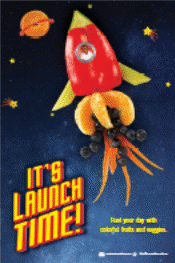 Under the Team Nutrition initiative, FNS is developing posters and suggestions for school-wide nutrition education events that use scientifically based, behaviorally focused, and motivational messages to encourage children to choose and consume fruits, vegetables, whole grains, and low-fat or fat-free milk. The new school meal pattern requirements, published on January 26, 2012, require schools to serve meals that include more fruits, vegetables and whole grain rich foods and offer only fat-free and low-fat milk.