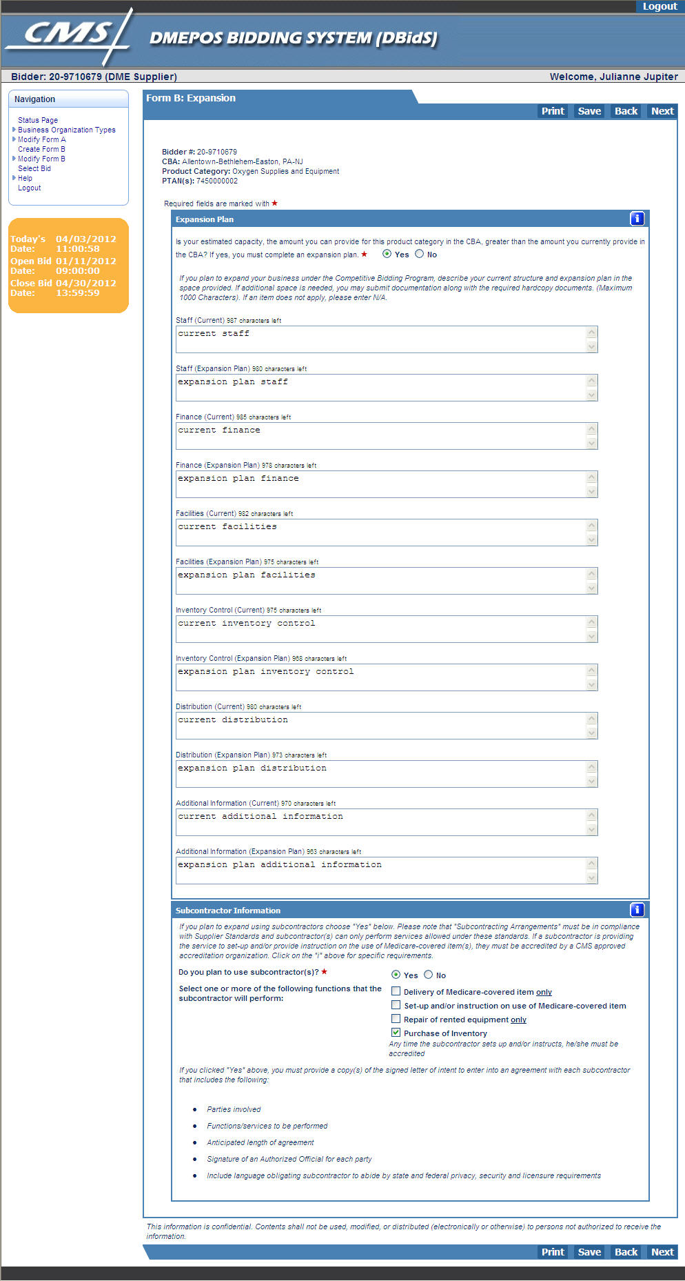 Requests for Bids (RFB) for Durable Medical Equipment, Prosthetics, Orthotics, and Supplies (DMEPOS) Competitive Bidding Program