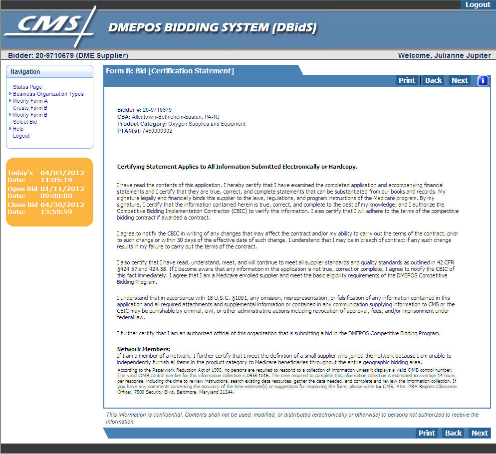 Requests for Bids (RFB) for Durable Medical Equipment, Prosthetics, Orthotics, and Supplies (DMEPOS) Competitive Bidding Program