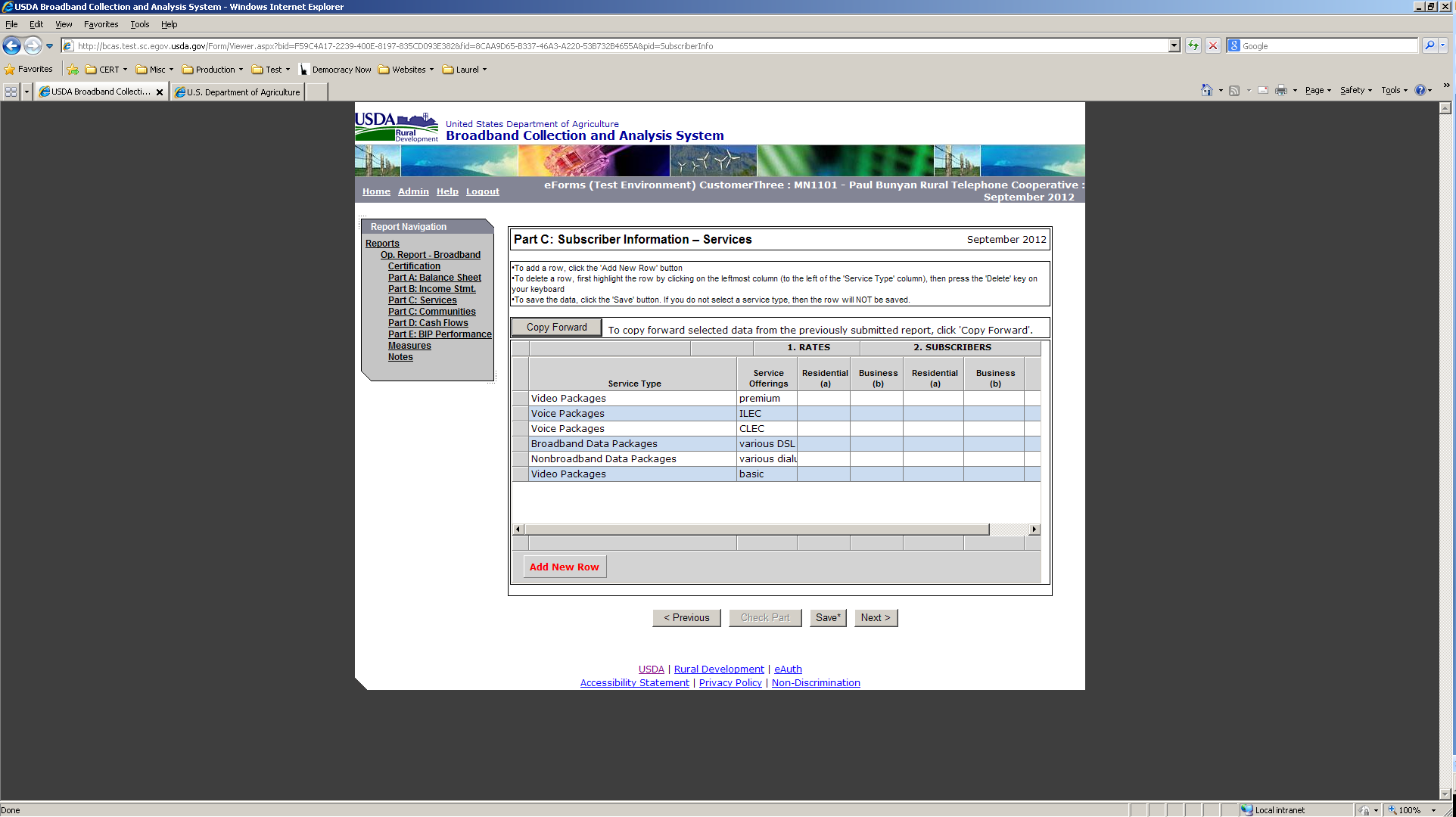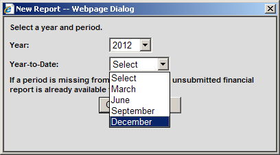 User Home Screen - select “New Report” to create a new Quarterly Operating Report