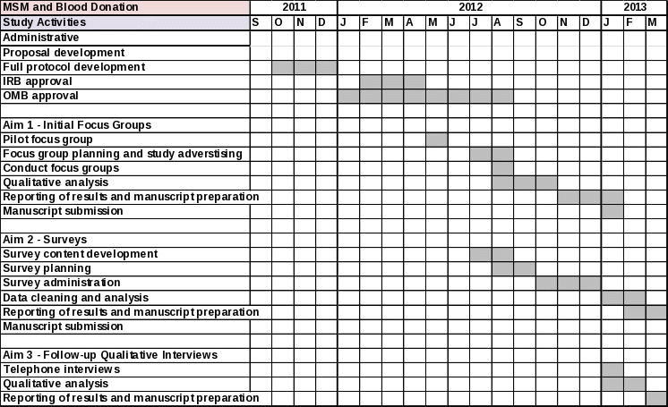 While many scientists and ethicists have expressed opinions in support or against modification of current MSM policy for blood donation14-25 there is a paucity of data that directly addresses important aspects of this policy debate. Motivating factors and compliance or not with the policy or a modified policy by MSM and current blood donors is an important and as yet unstudied aspect of the larger issue. The proposed study will build off the studies conducted in Sweden and UK and will collect directly relevant information on this topic by assessing motivations for blood donation in the MSM population using key informants and by estimating the prevalence of compliance and non-compliance with the current policy.