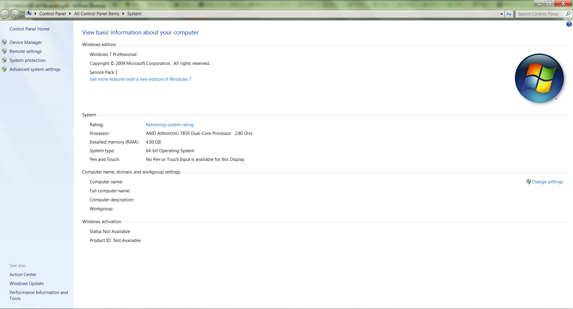 The information about the computer system is shown in the main window. Provide either a screen shot as shown above, or list all information shown under Windows edition and System.