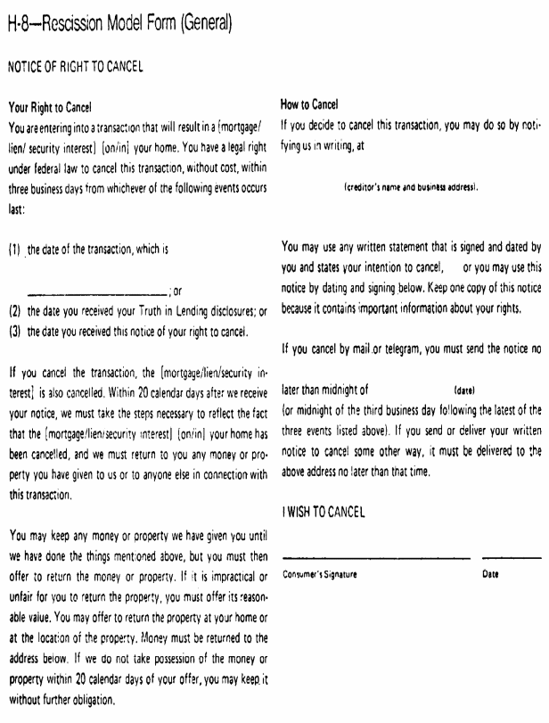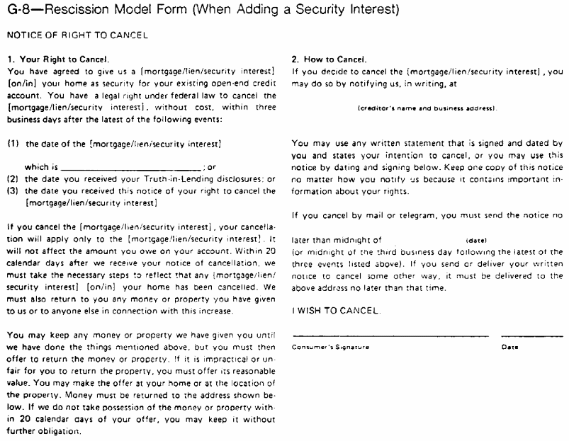G-8 Rescission Model Form (When Adding a Security Interest) (§ 1026.15)