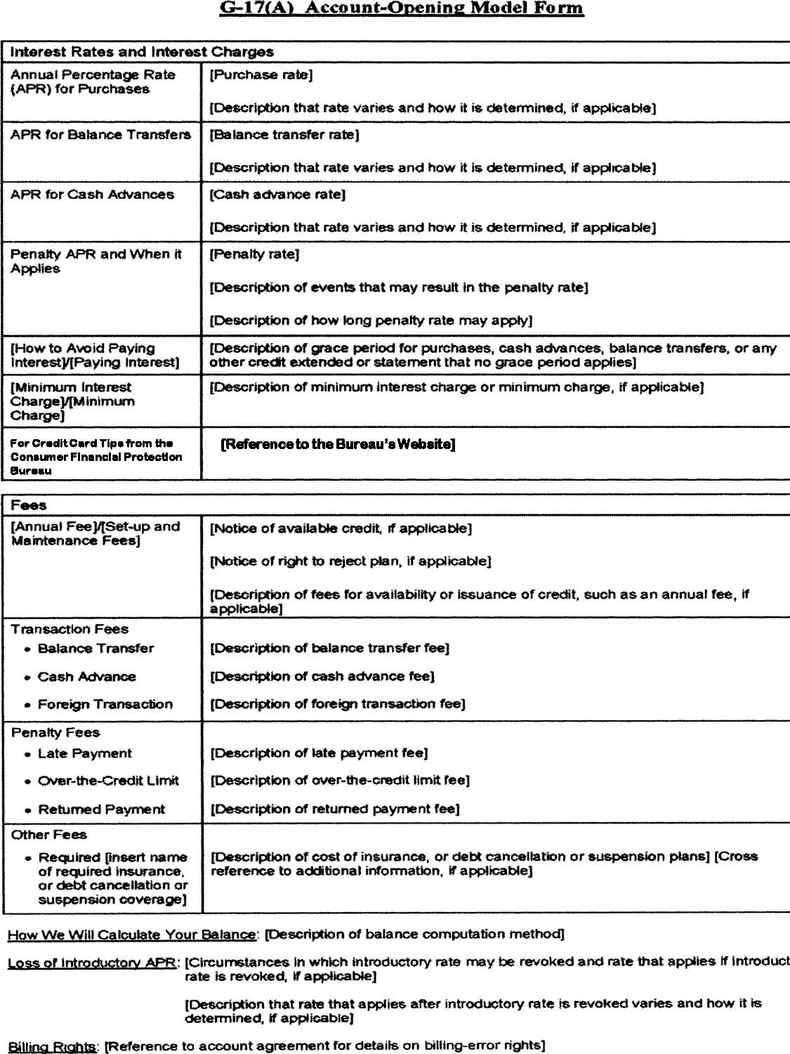 G-17(A) Account-opening Model Form (§ 1026.6(b)(2))