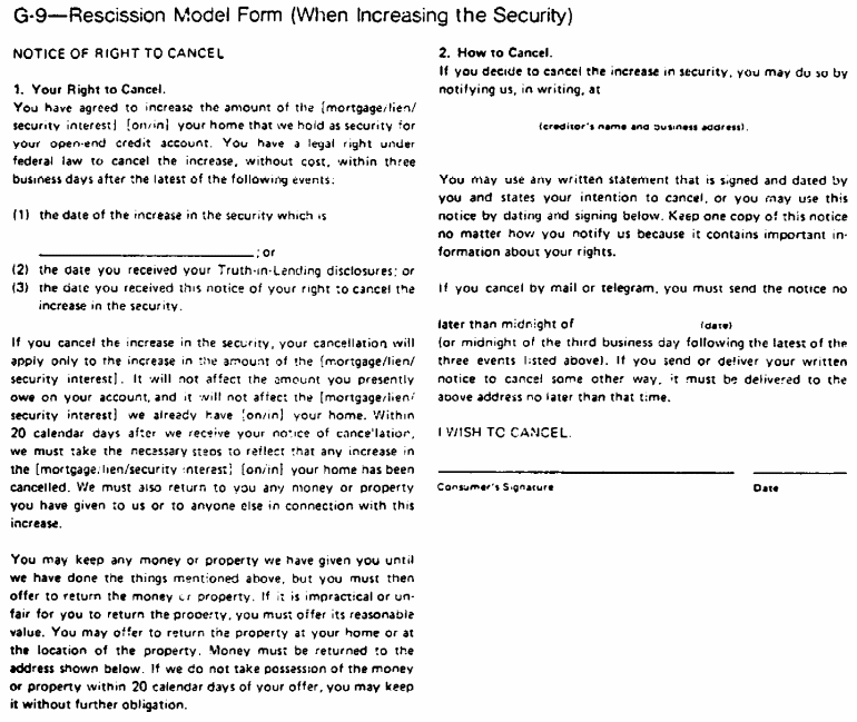 G-9 Rescission Model Form (When Increasing the Security) (§ 1026.15)