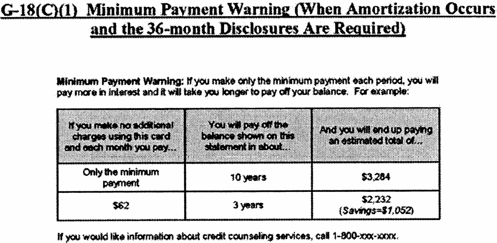 G-18(C)(1) Minimum Payment Warning (When Amortization Occurs and the 36-Month Disclosures Are Required) (§ 1026.7(b))