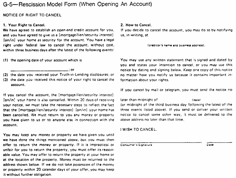 G-5 Rescission Model Form (When Opening an Account) (§ 1026.15)