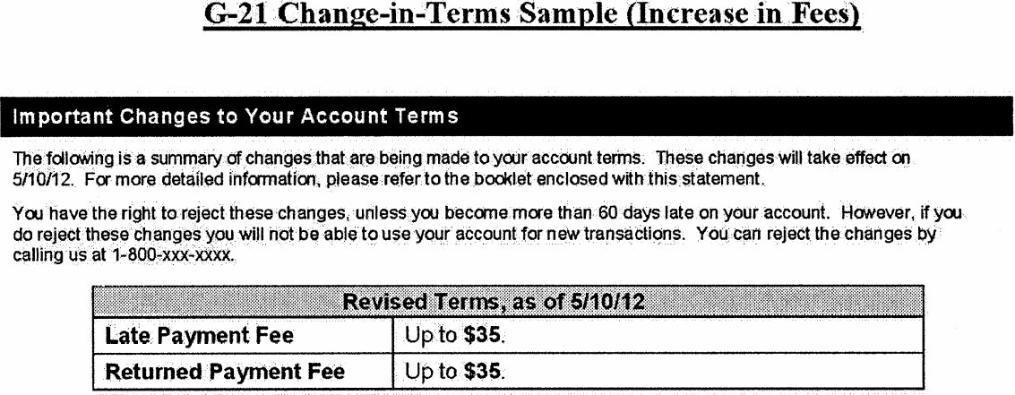 G-21 Change-in-Terms Sample (Increase in Fees) (§ 1026.9(c)(2))