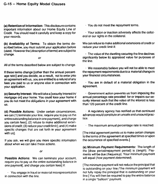 G-1 Balance Computation Methods Model Clauses (Home-equity Plans) (§§ 1026.6 and 1026.7)