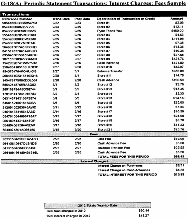 G-18(A) Transactions; Interest Charges; Fees Sample (§ 1026.7(b))