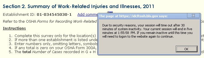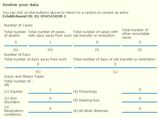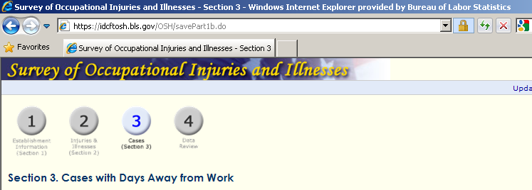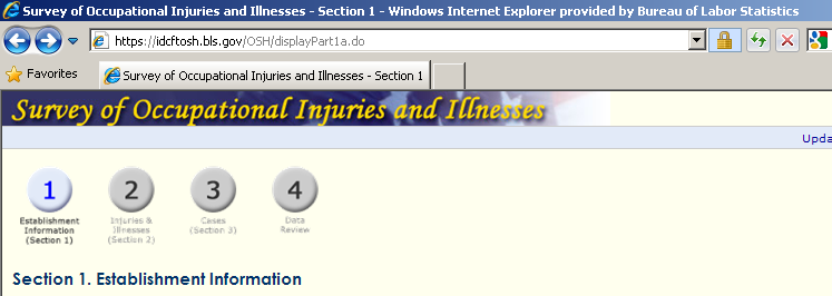 The webpage titles displayed by the browser match the titles displayed in the webpage. For example, in Section 1 the browser displays “Section 1” and the webpage shows “Section 1. Establishment Information”.