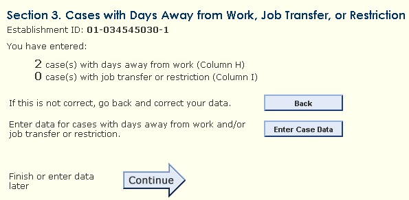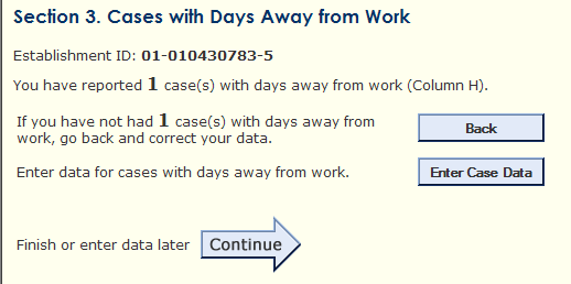 When a respondent indicates that they do not have detailed cases to report, the Enter Case Data button does not appear.