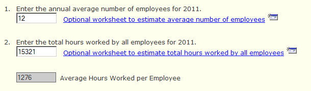 Additionally, the average hours worked per employee field was gray-filled to indicate that it is read only.