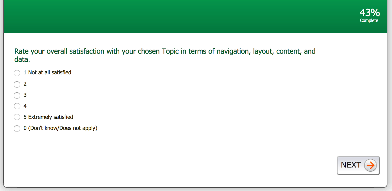 Rate your overall satisfaction with your chosen Topic in terms of navigation, layout, content, and data