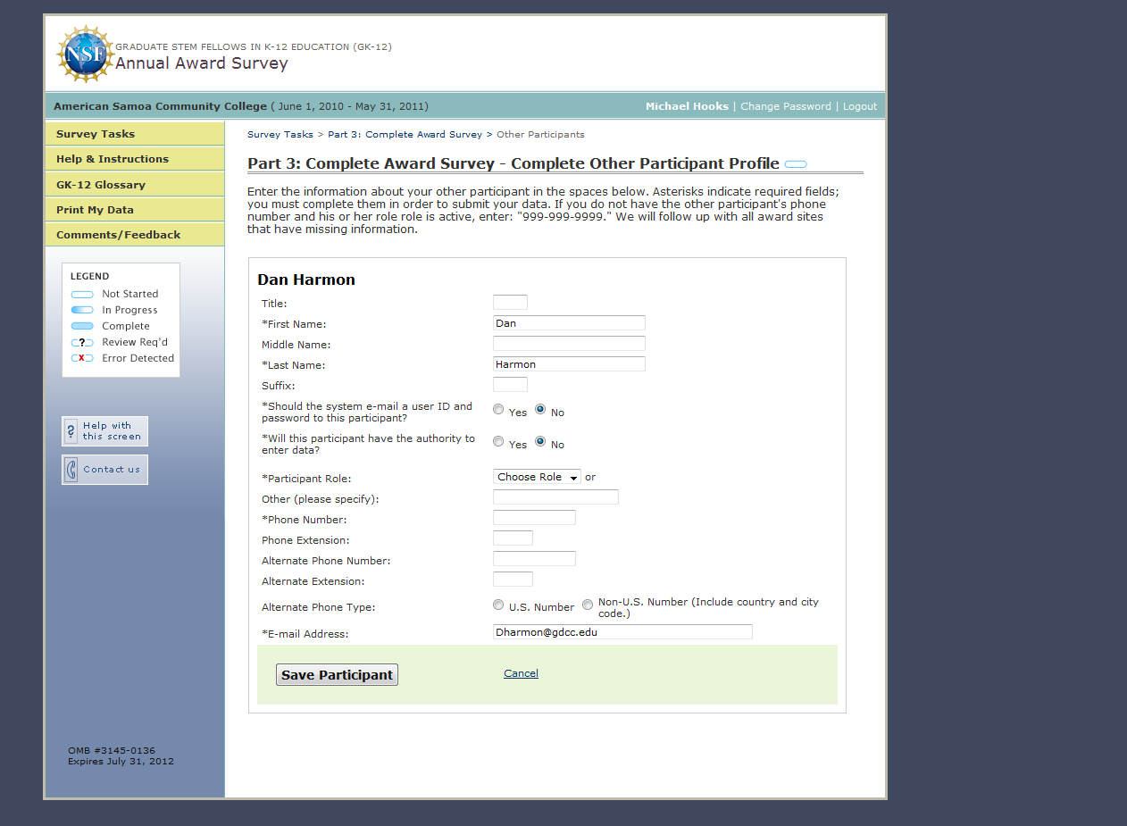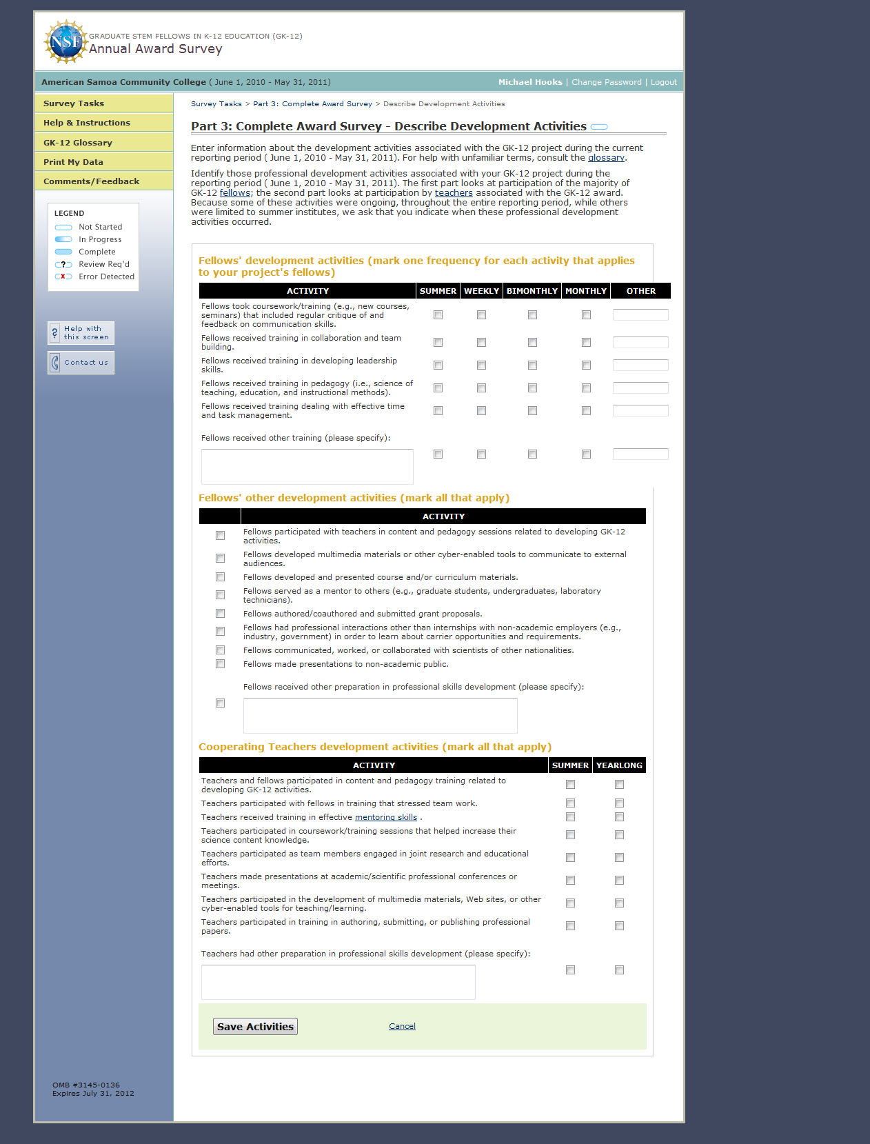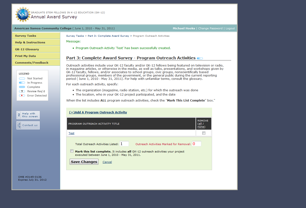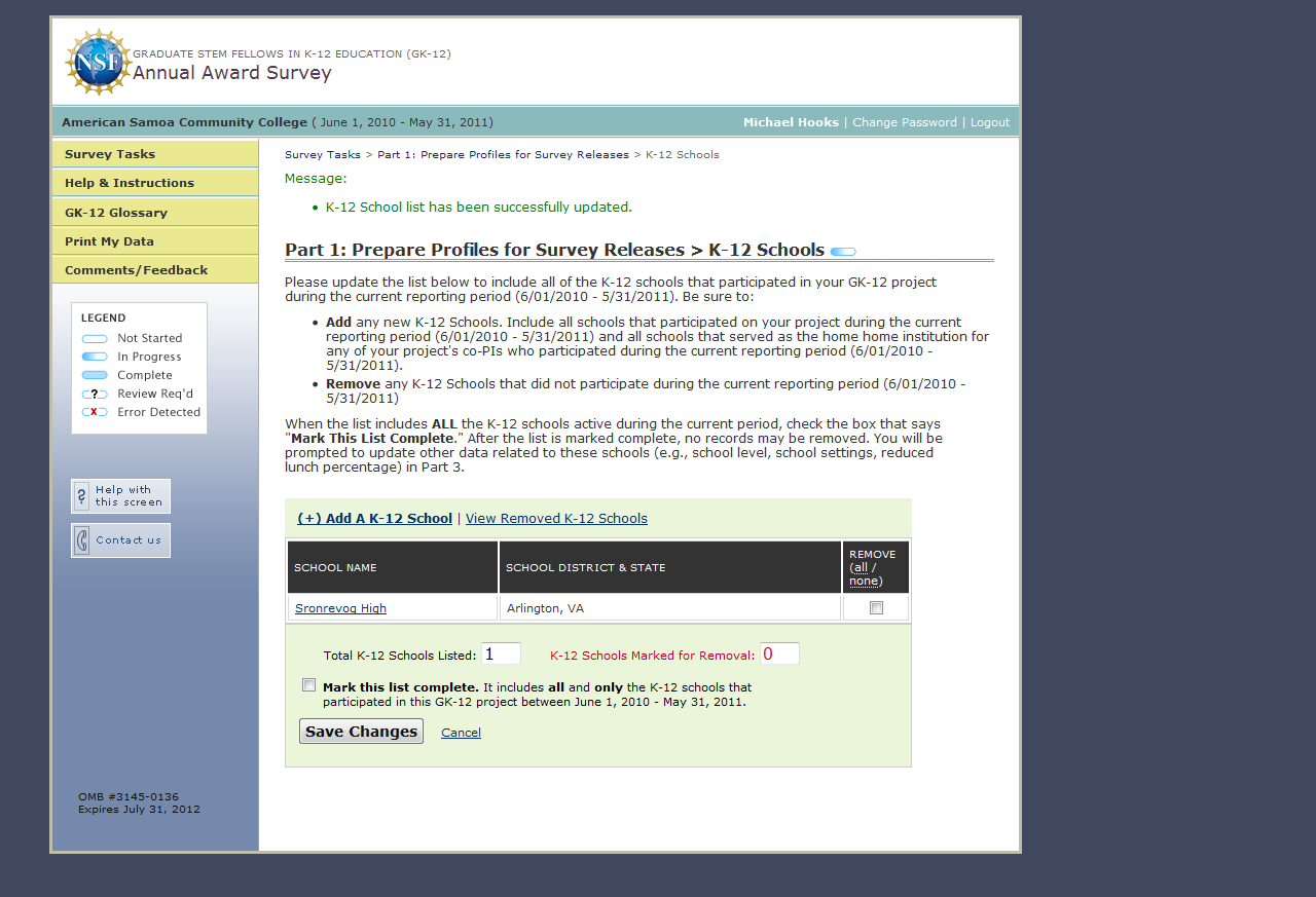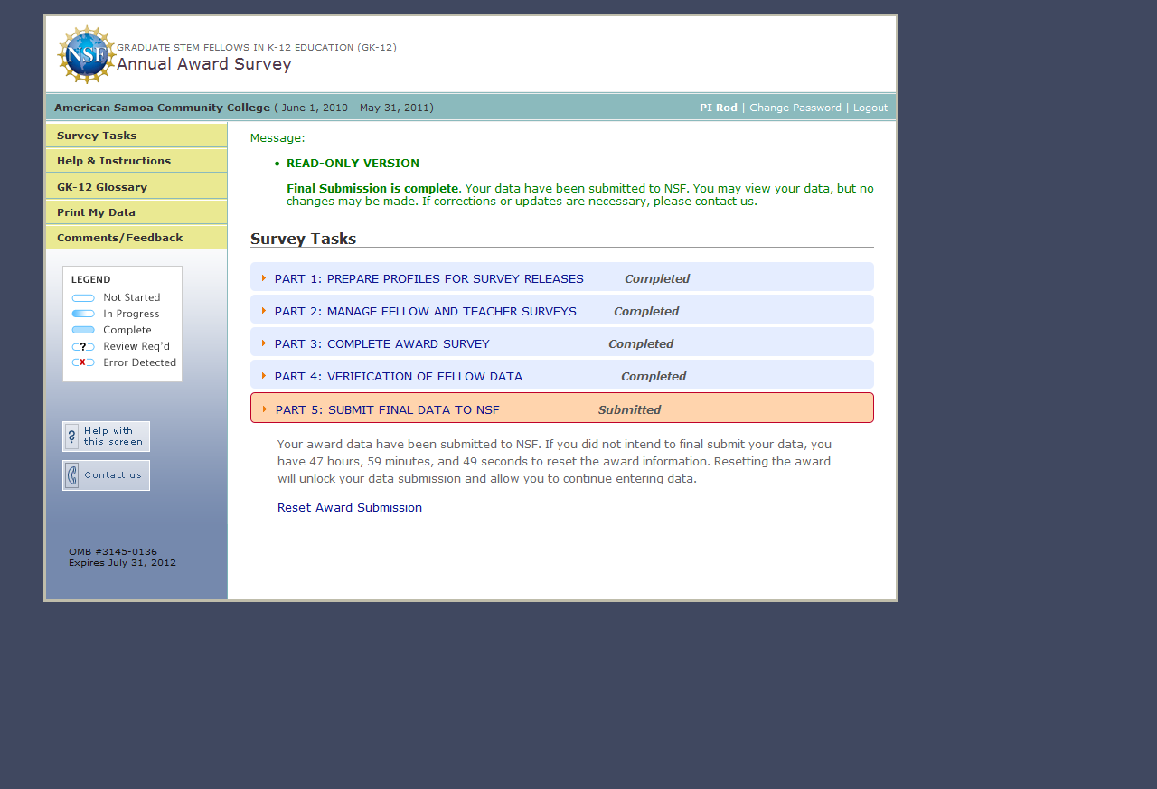 GK-12 Monitoring System Screenshots: Award Survey