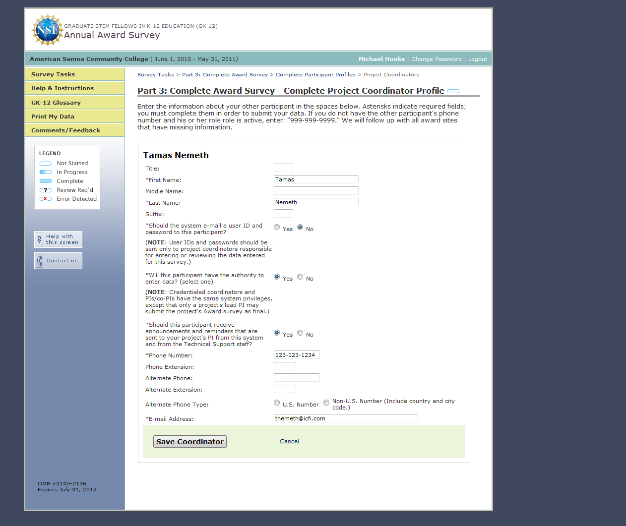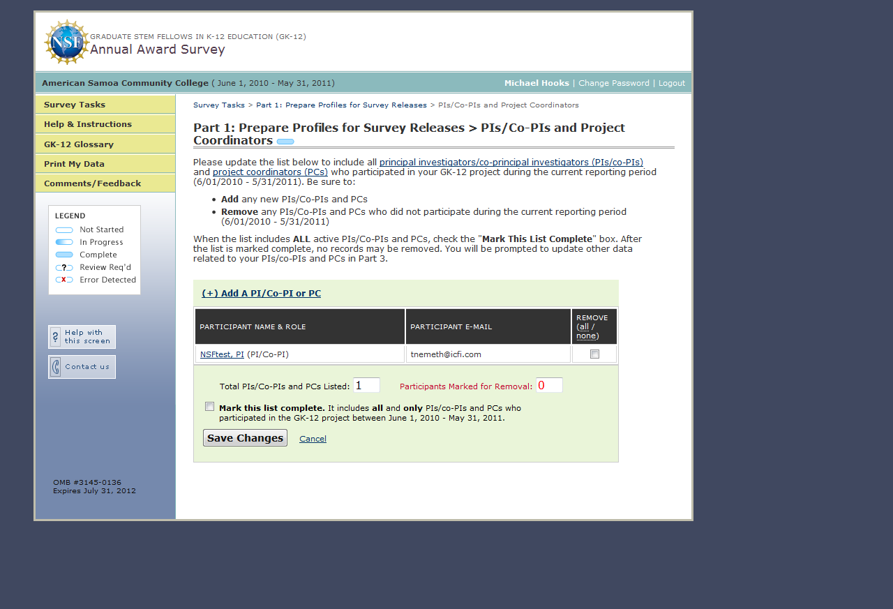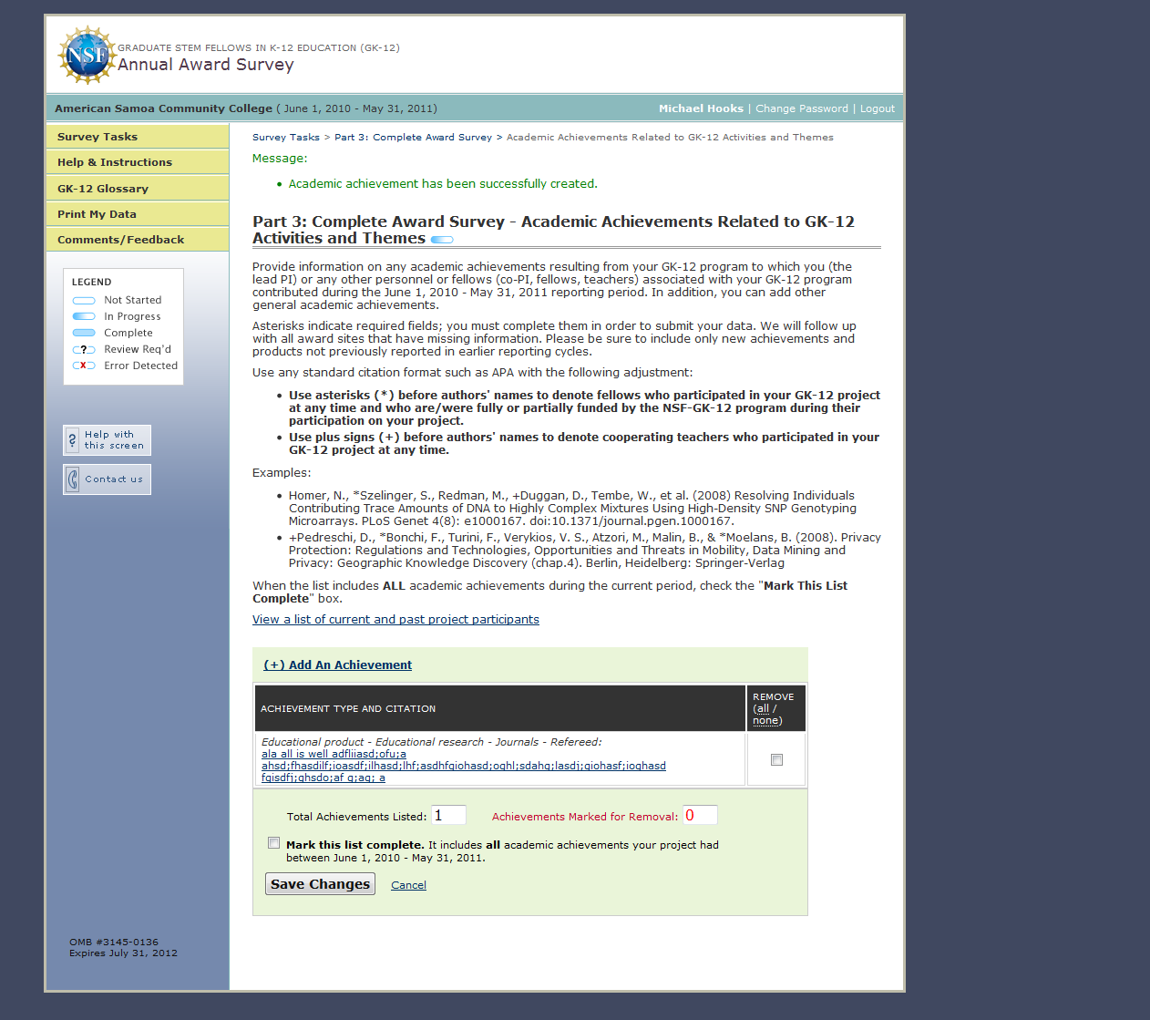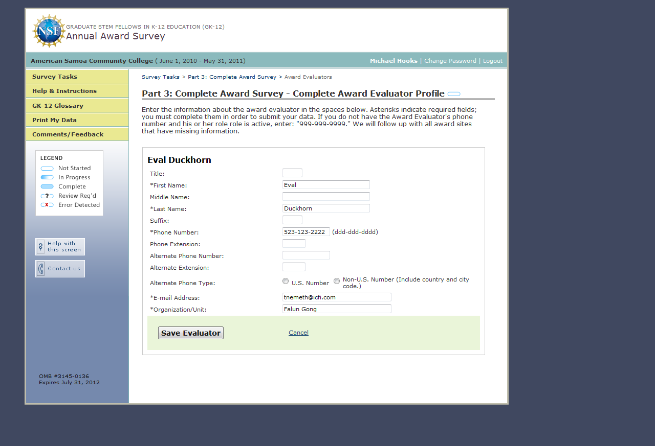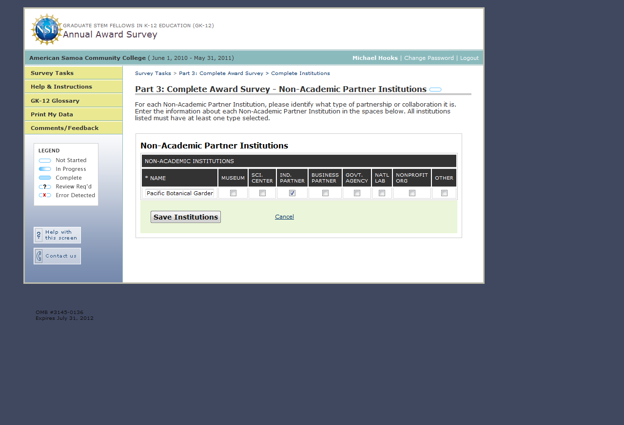 GK-12 Monitoring System Screenshots: Award Survey