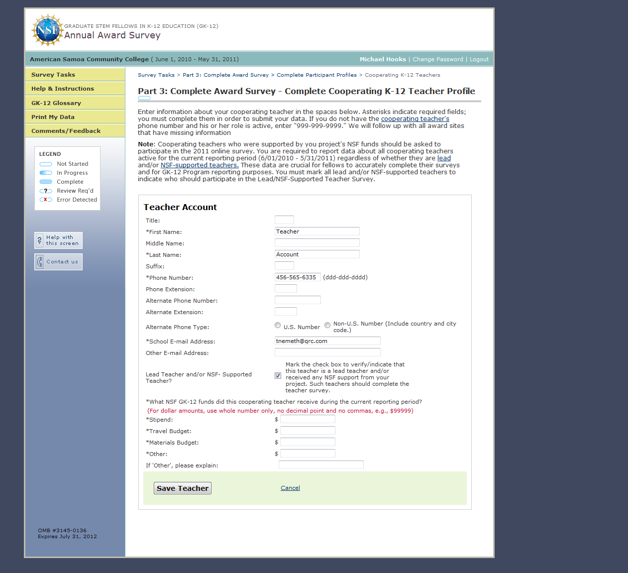 Graduate STEM Fellows in K-12 Education (GK-12) Monitoring System
