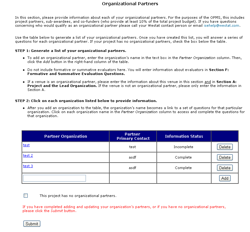 (Projects will complete C1-C5 for each Partner added in Section C)