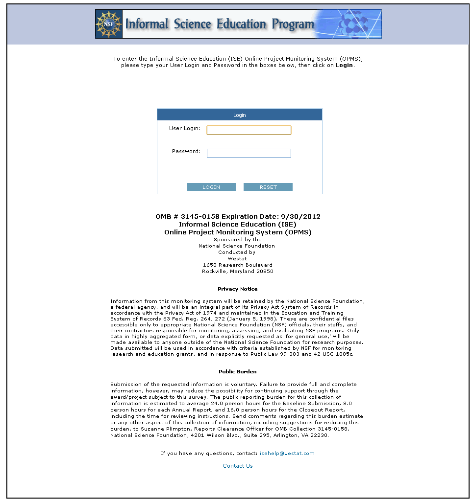AISL Monitoring System Screenshots: OPMS Baseline Survey