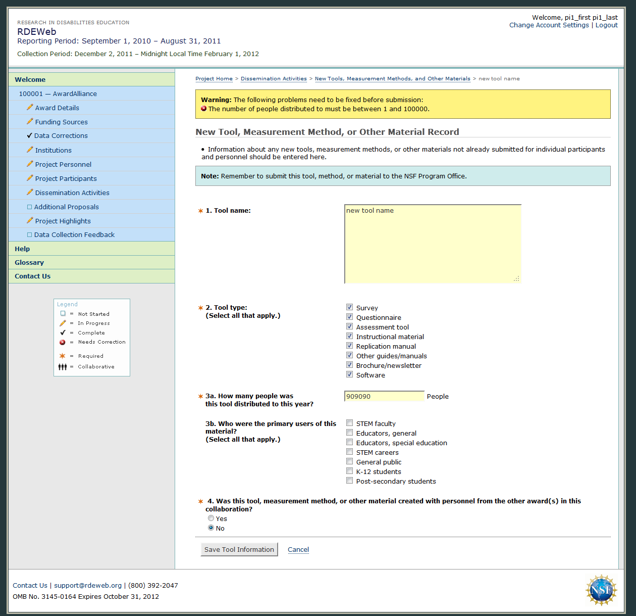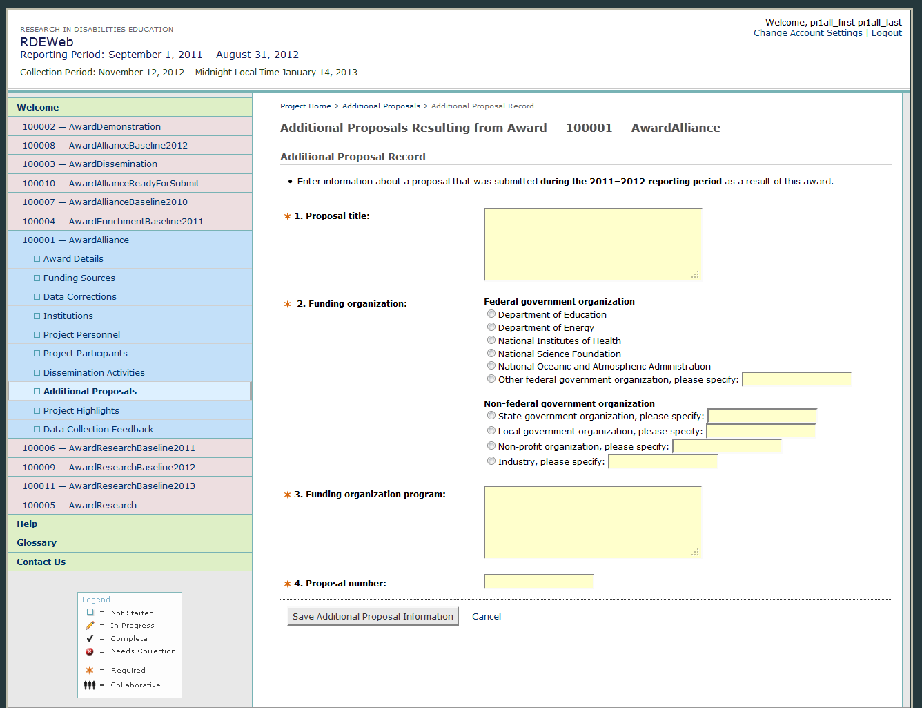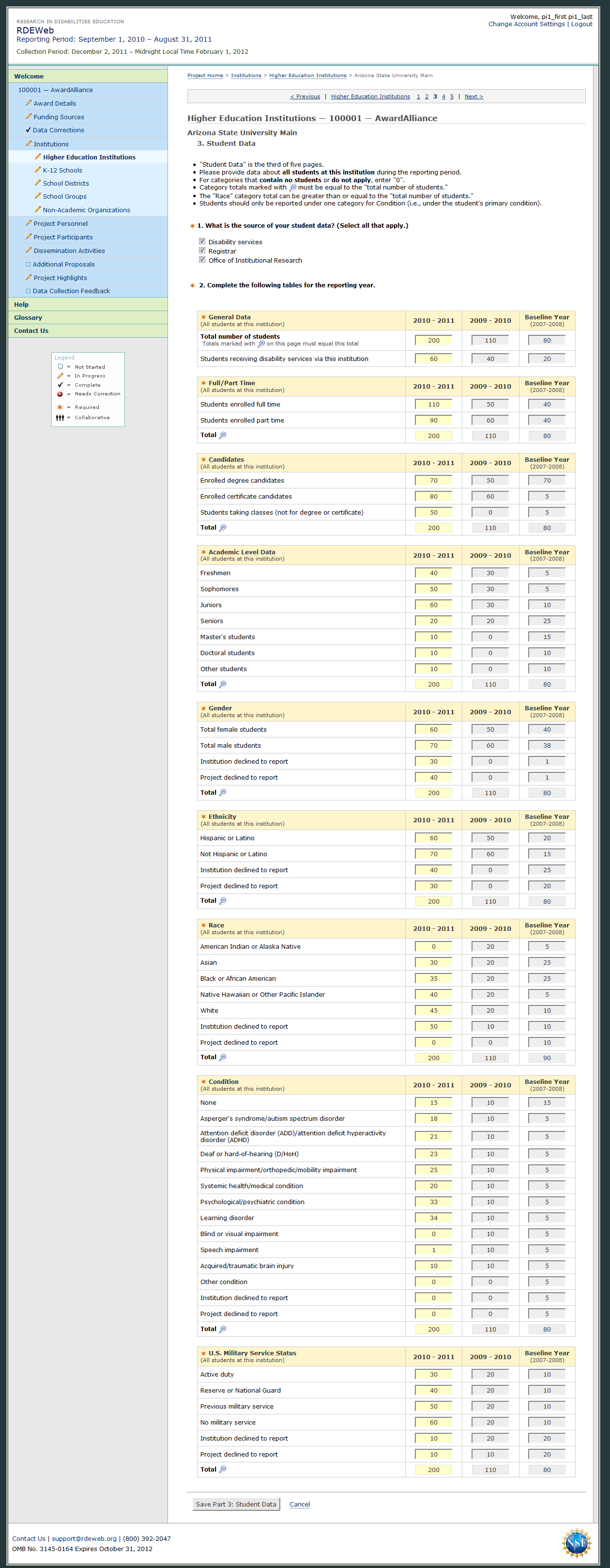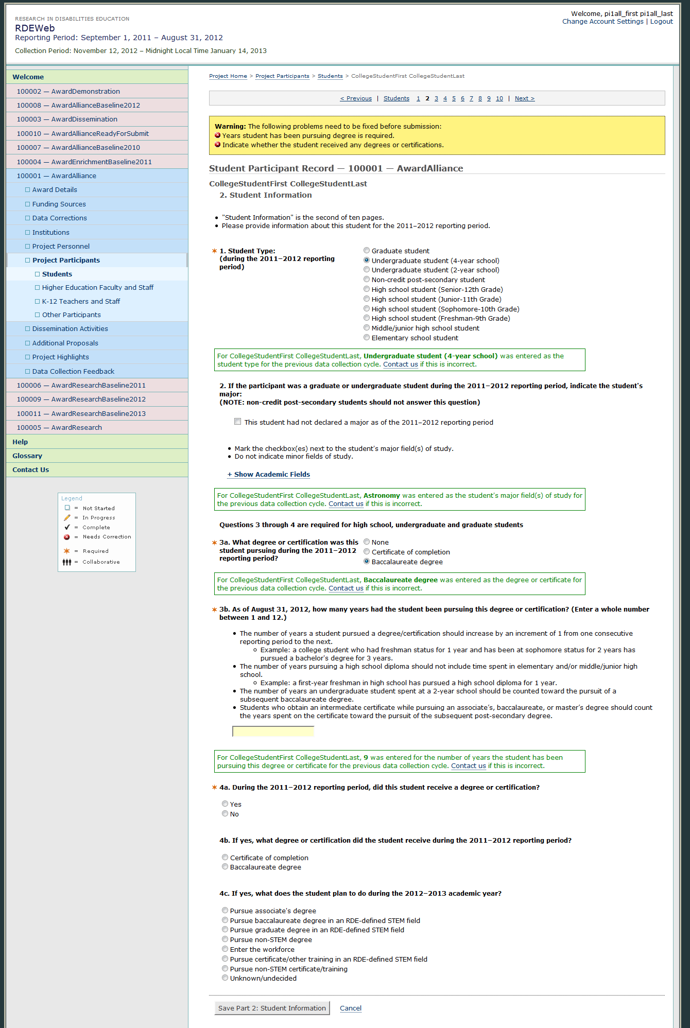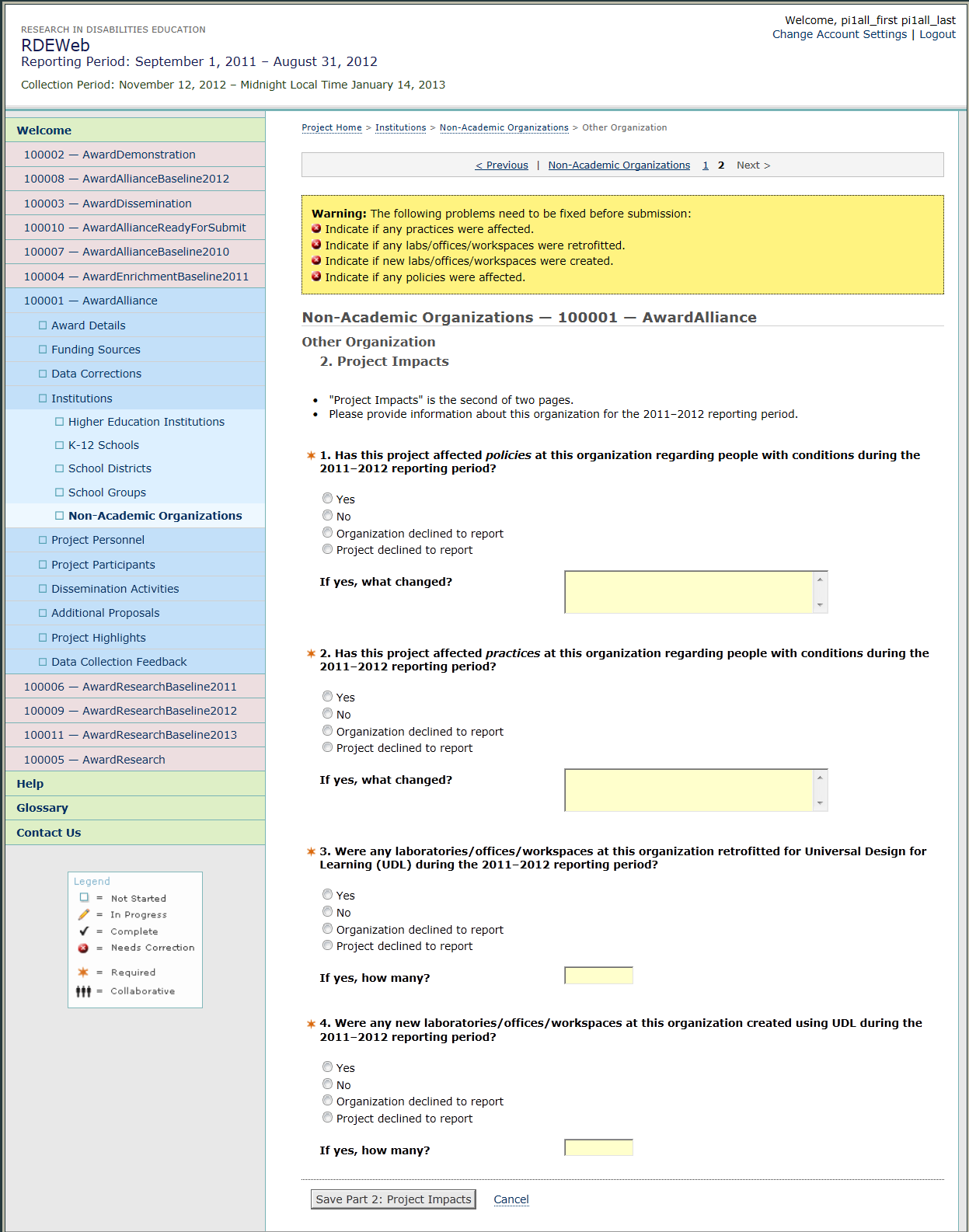 RDE Monitoring System Screenshots: Alliance Award Survey
