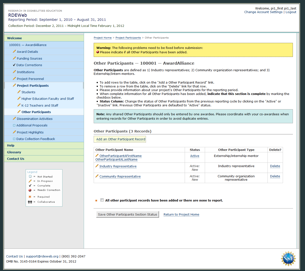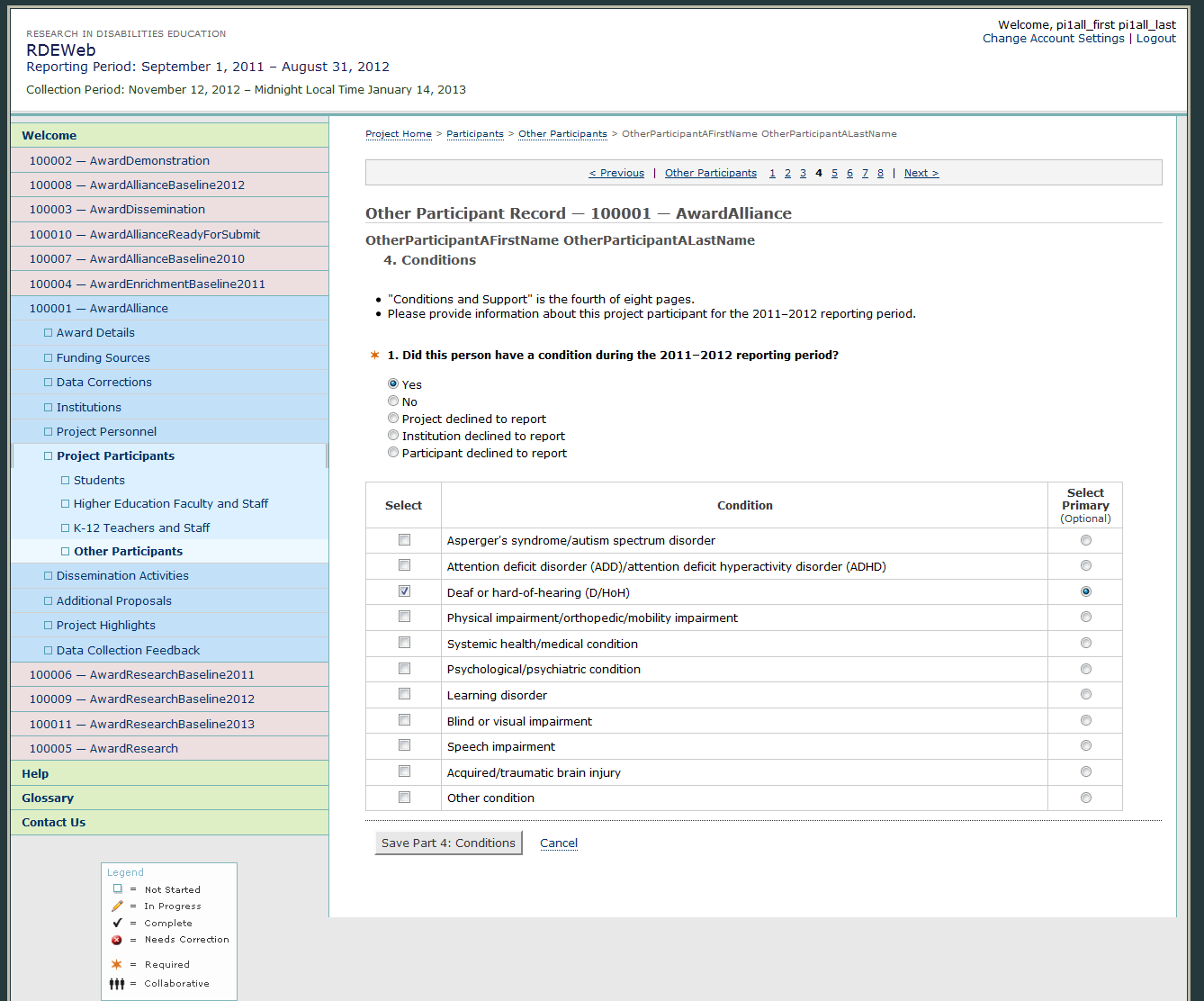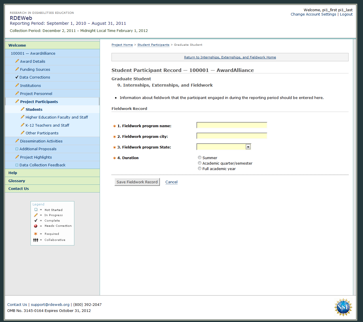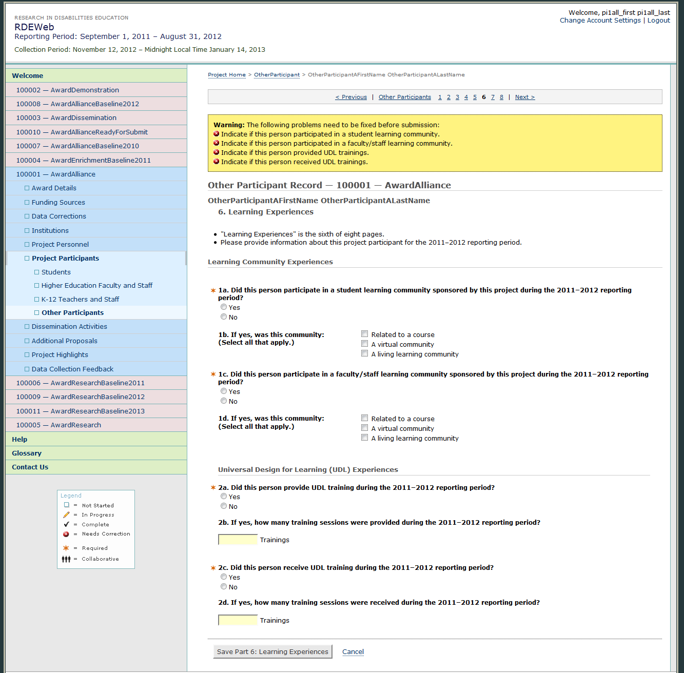 RDE Monitoring System Screenshots: Alliance Award Survey