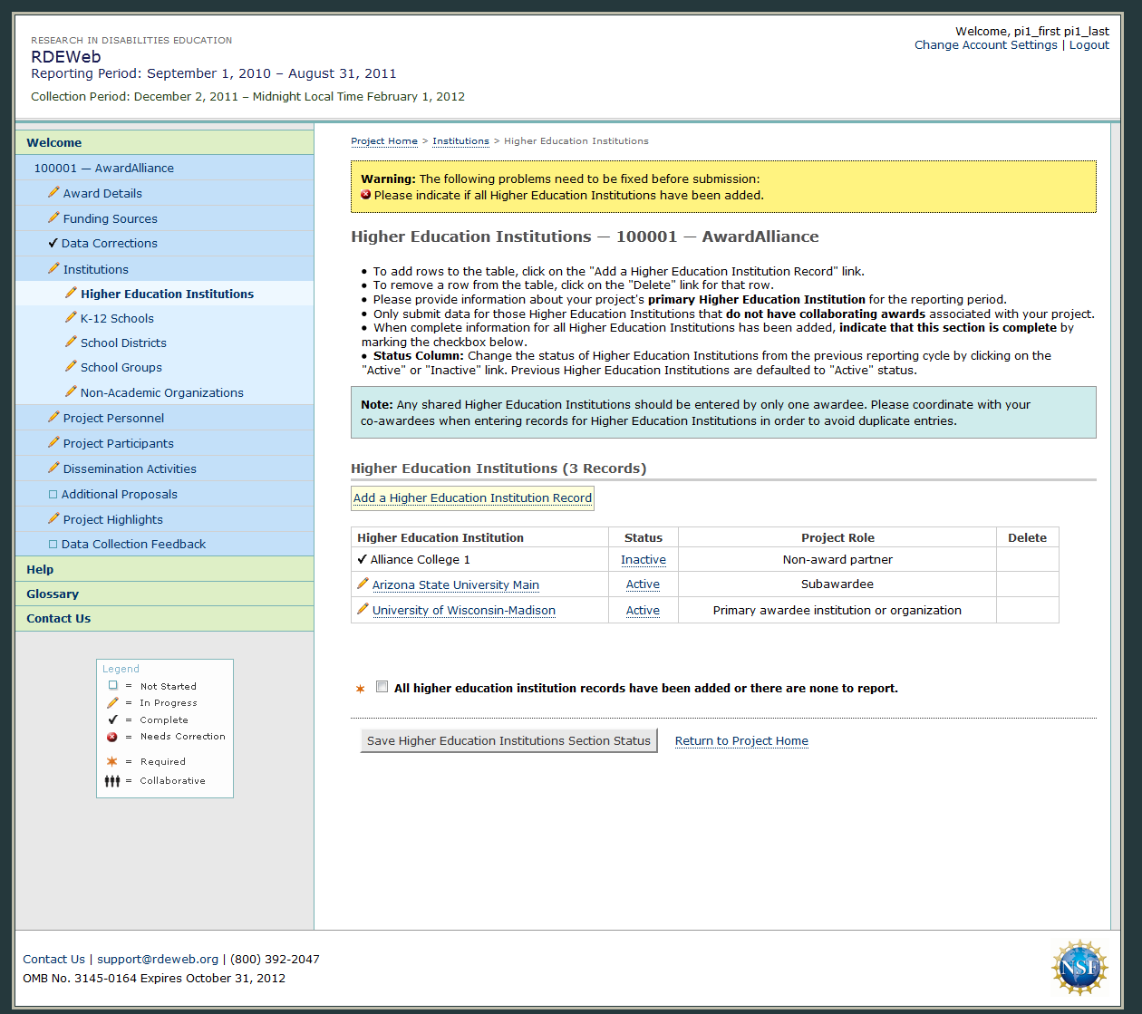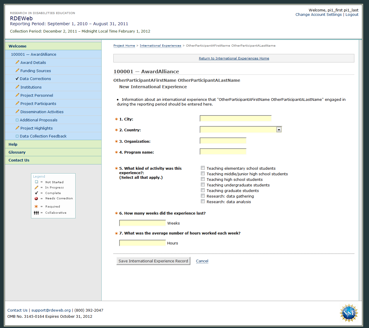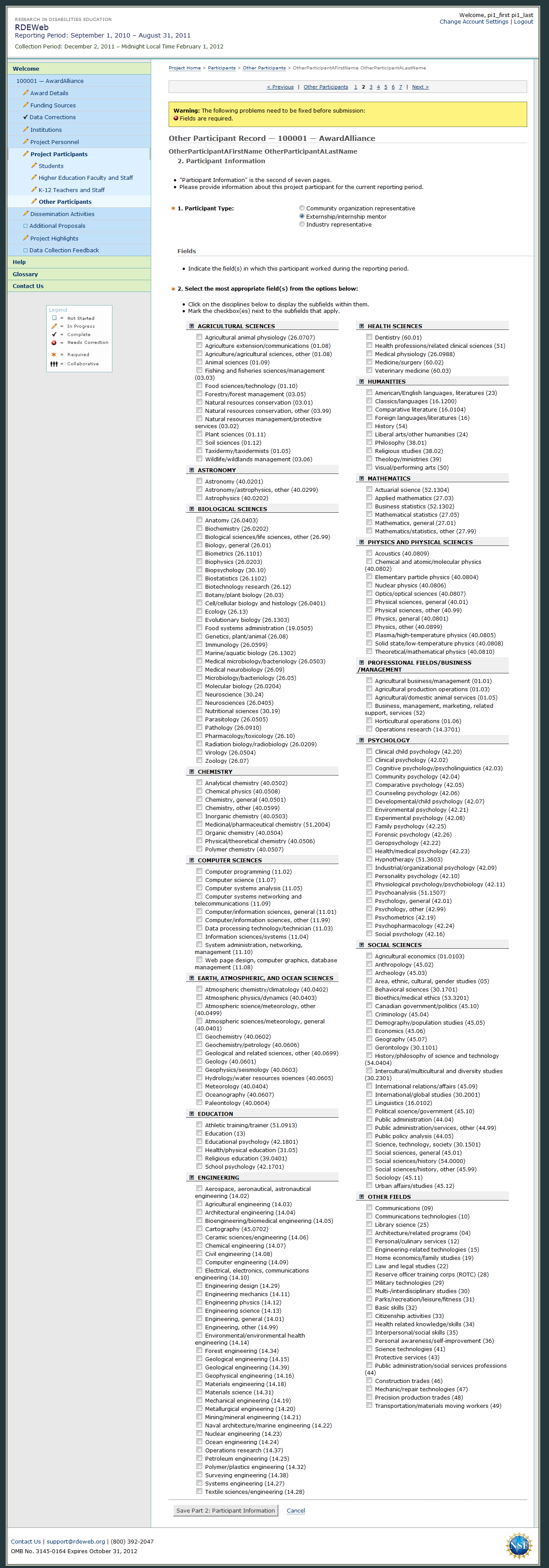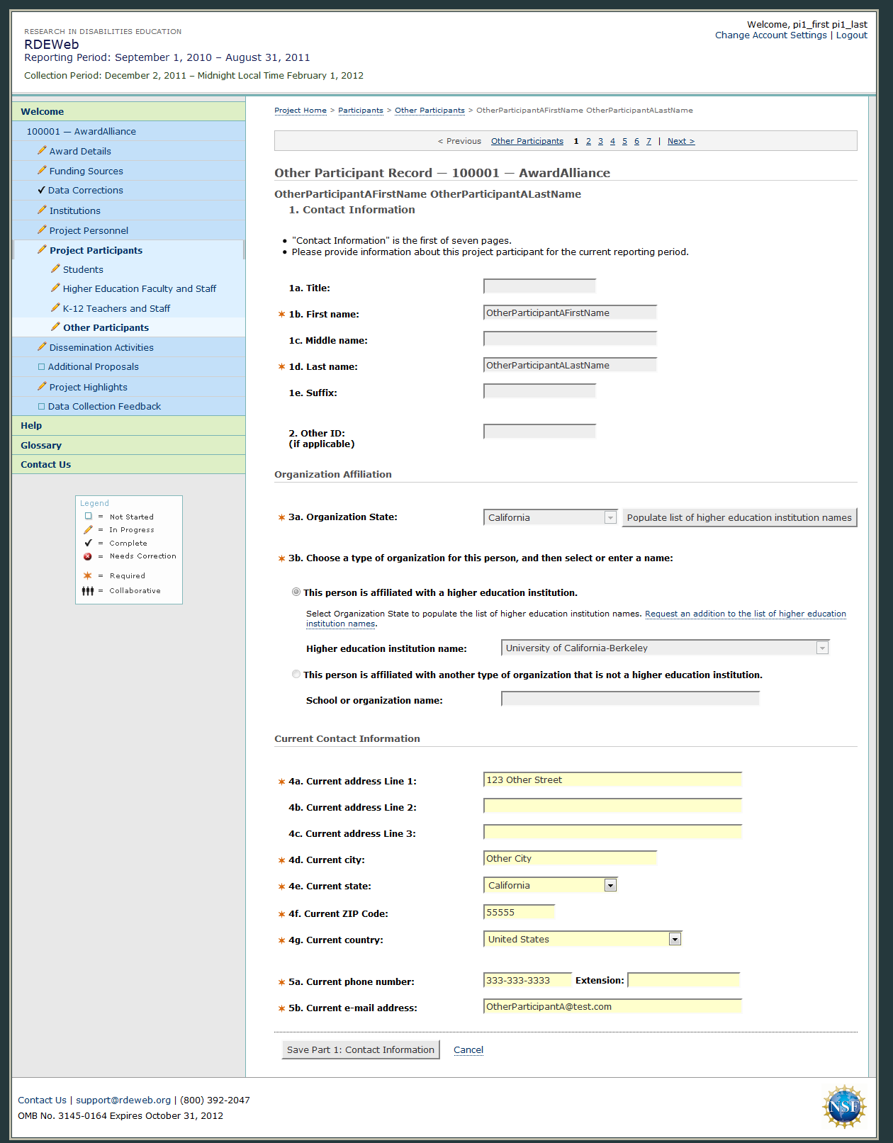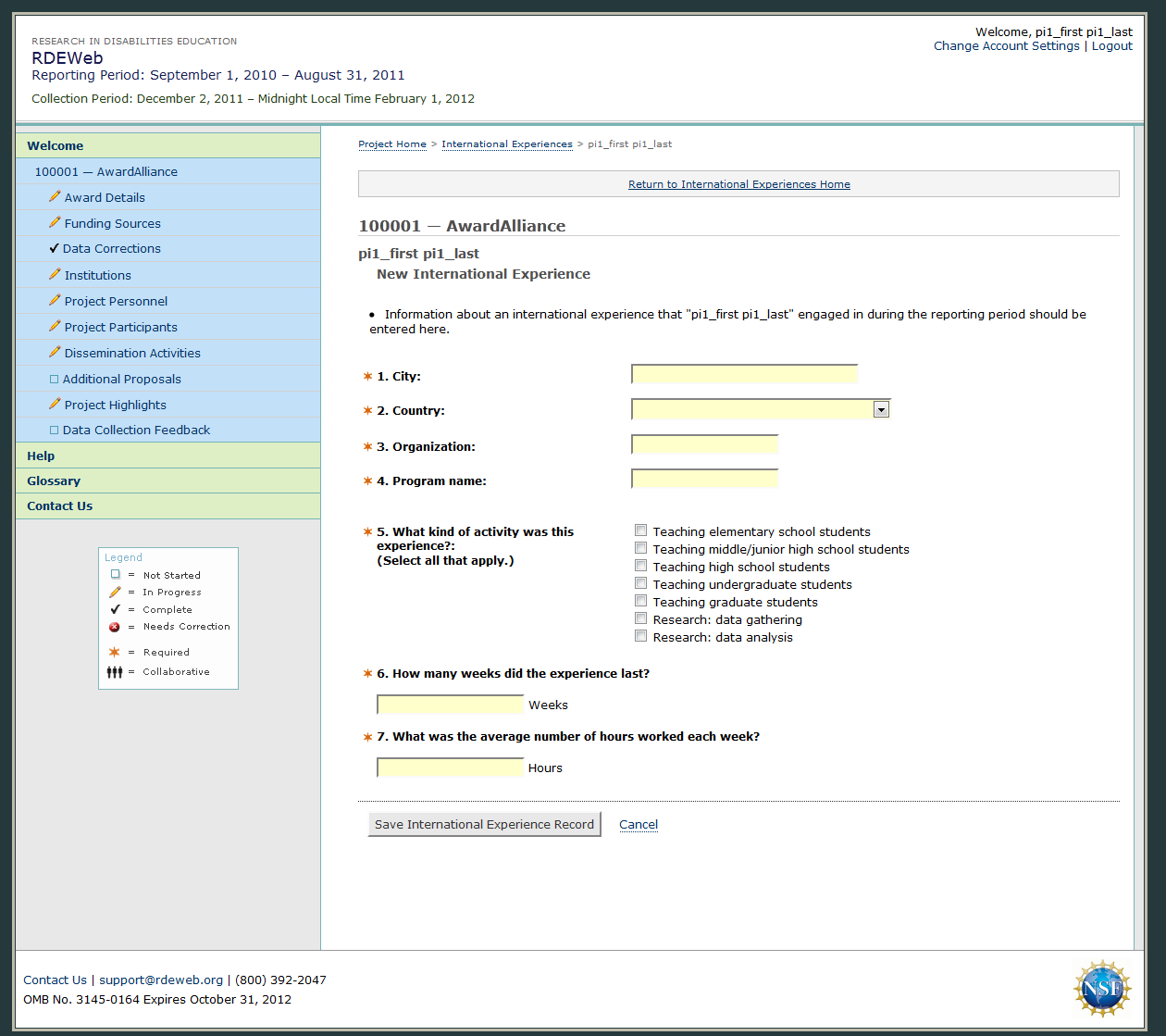 RDE Monitoring System Screenshots: Alliance Award Survey