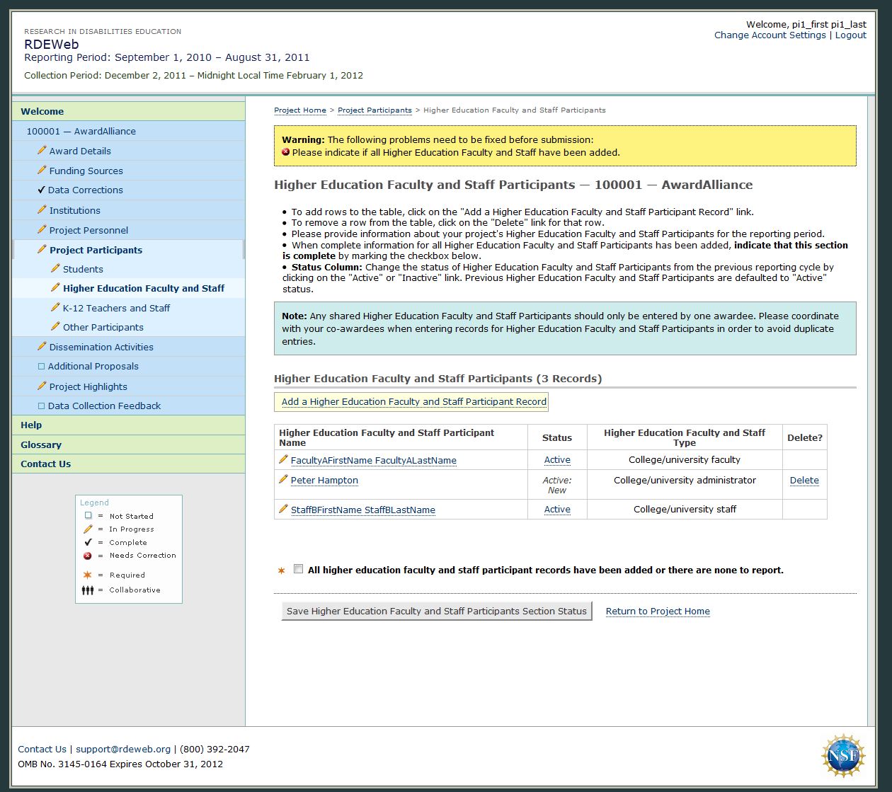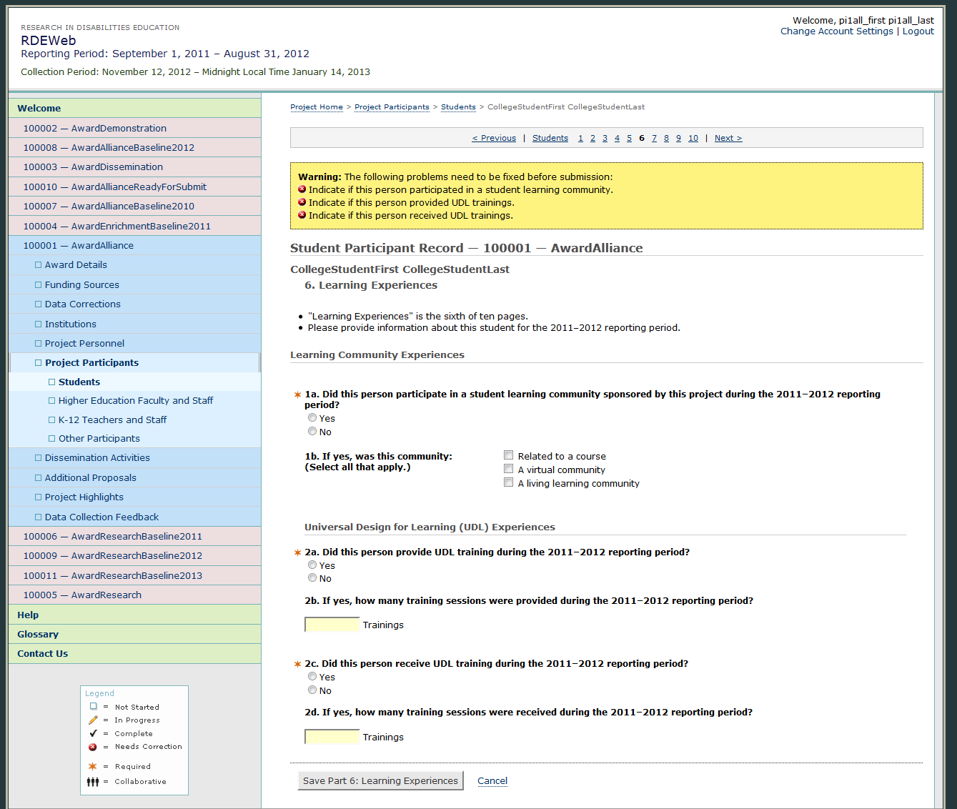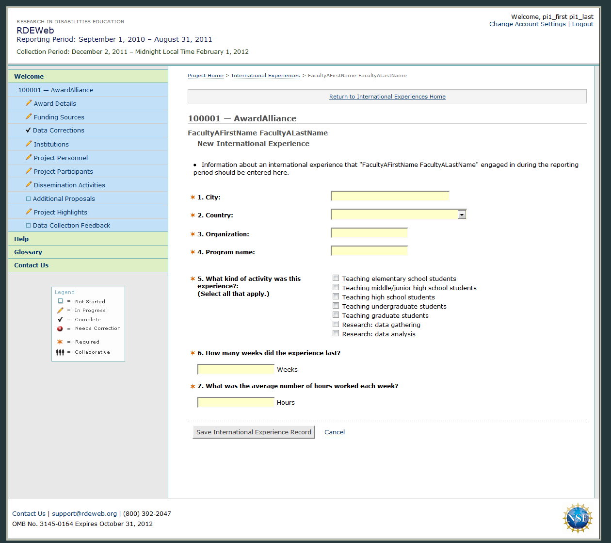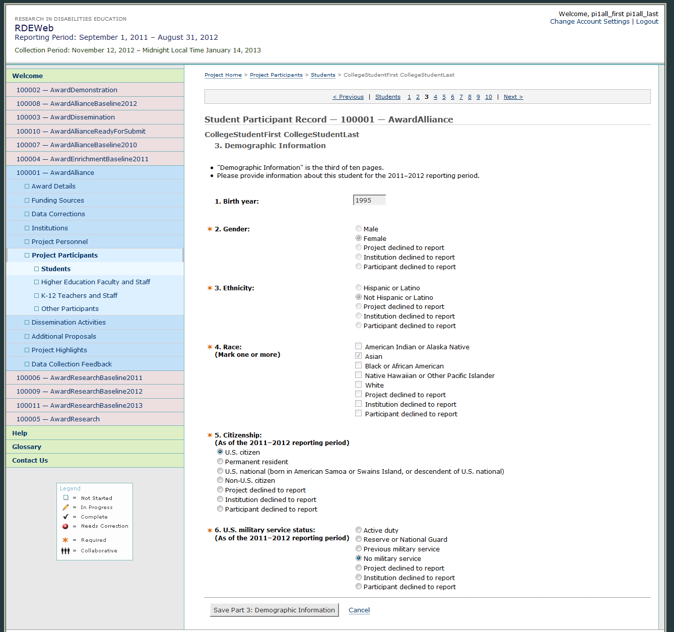 RDE Monitoring System Screenshots: Alliance Award Survey