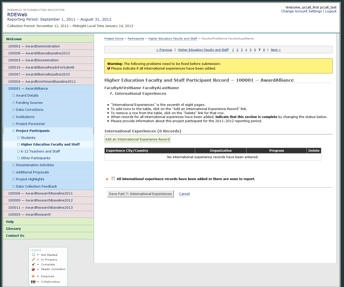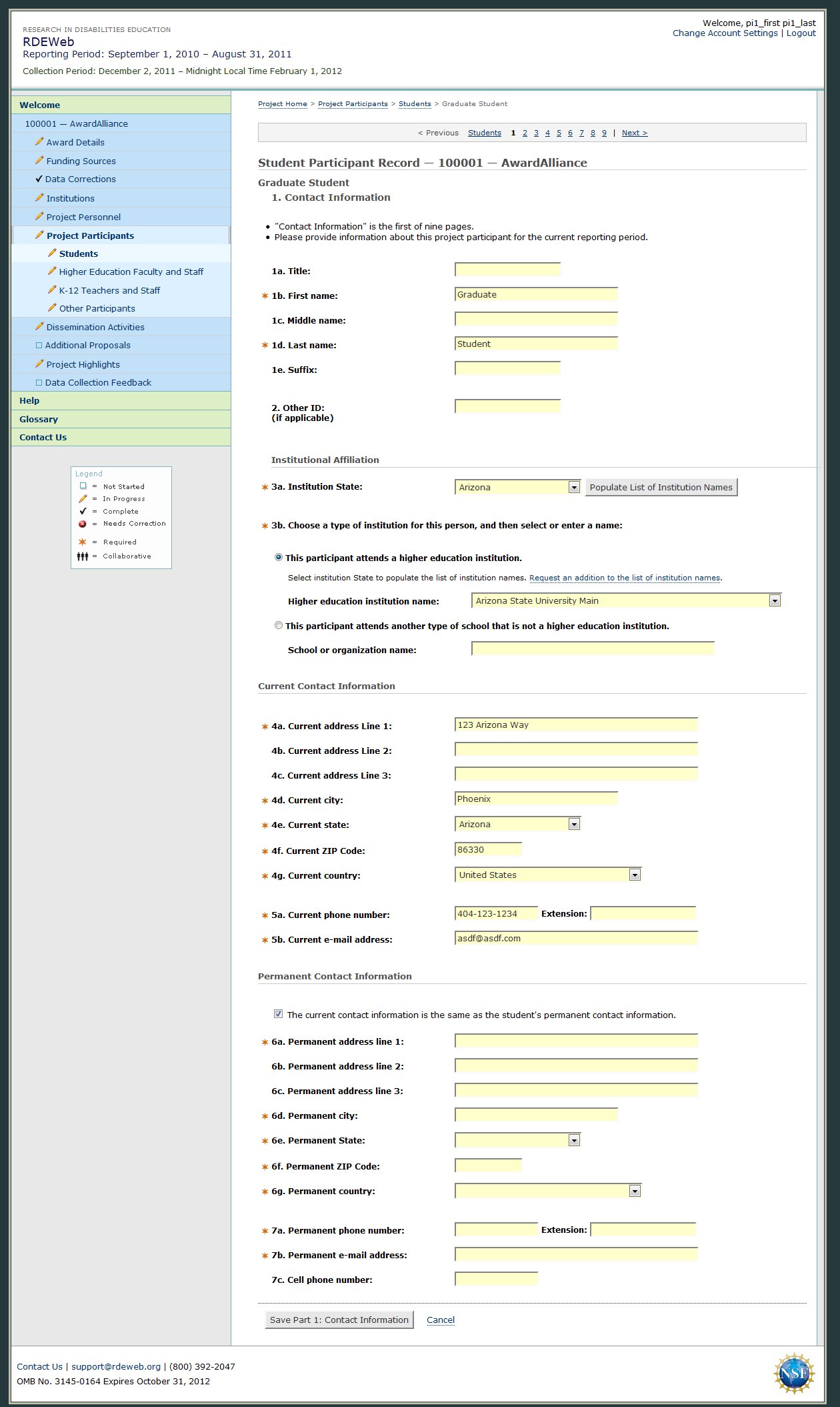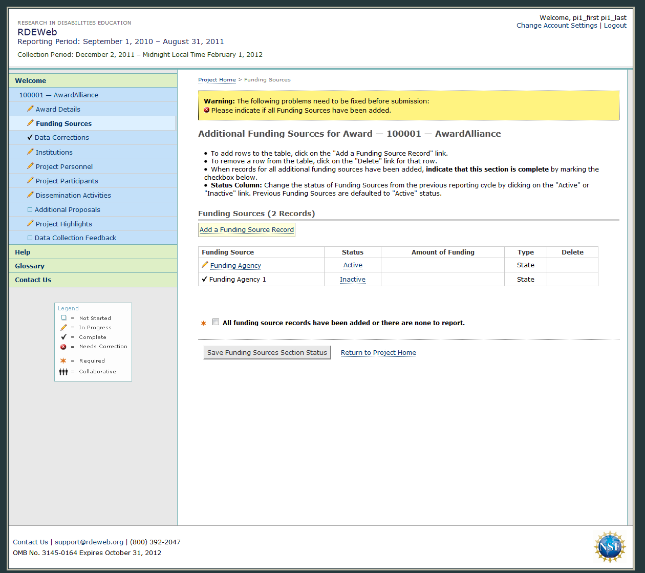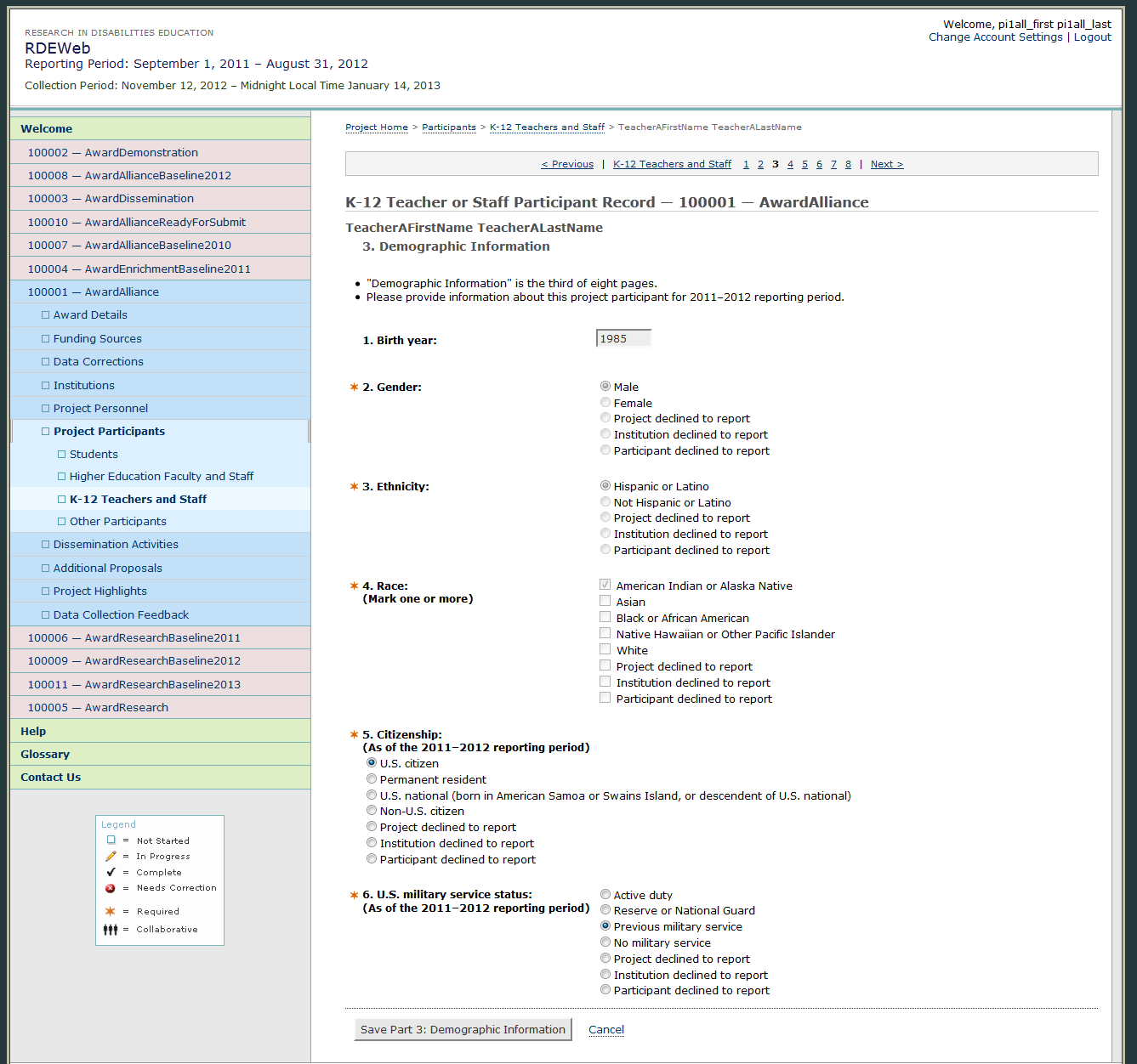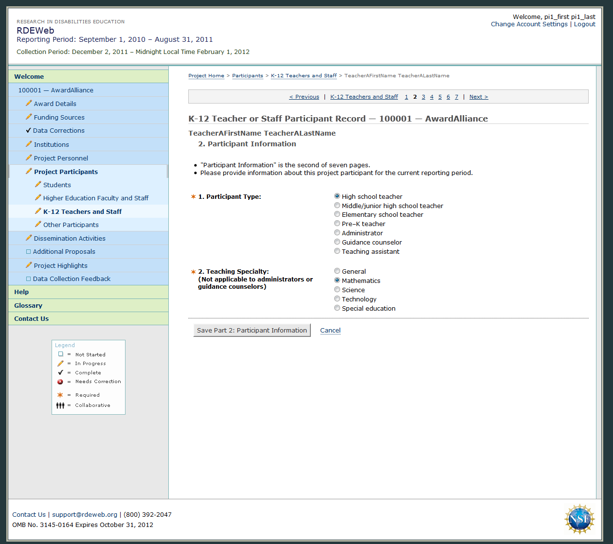 RDE Monitoring System Screenshots: Alliance Award Survey