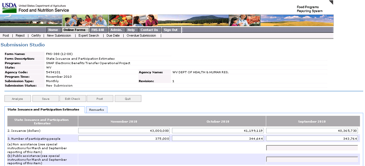 Form FNS-388 & 388A, State Issuance and Participation Estimates