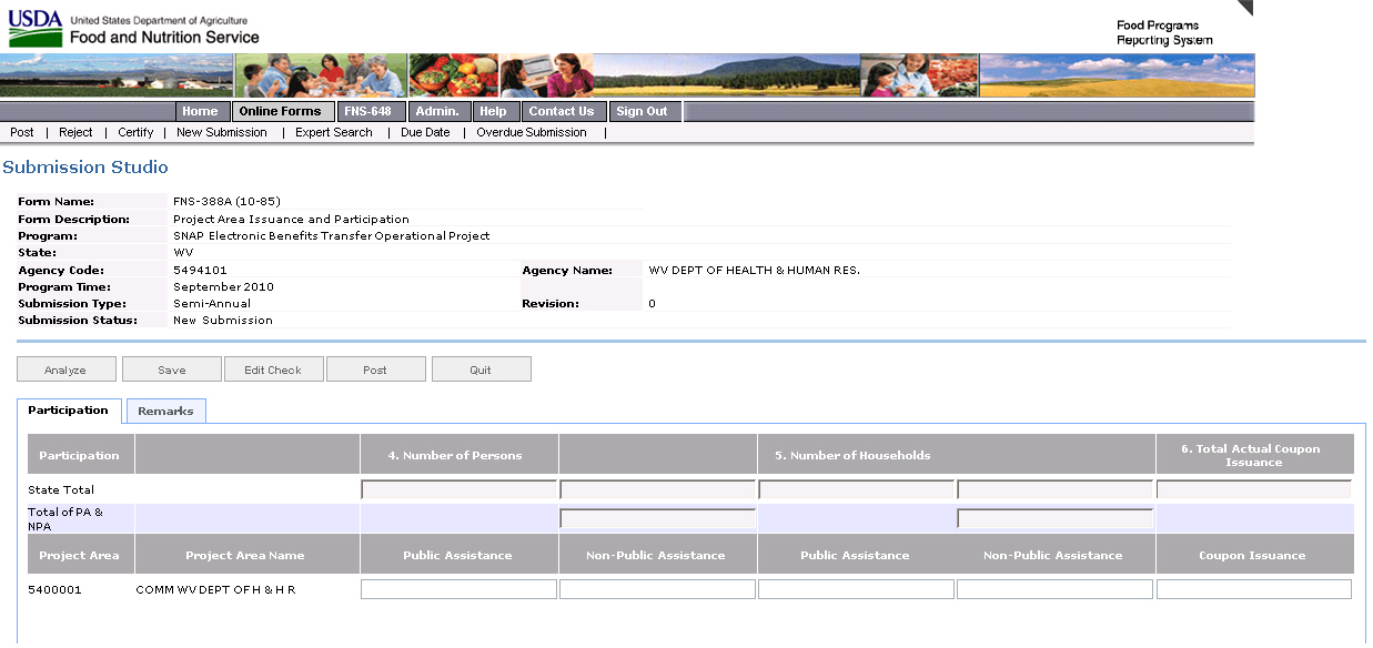 Form FNS-388 & 388A, State Issuance and Participation Estimates