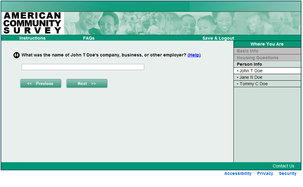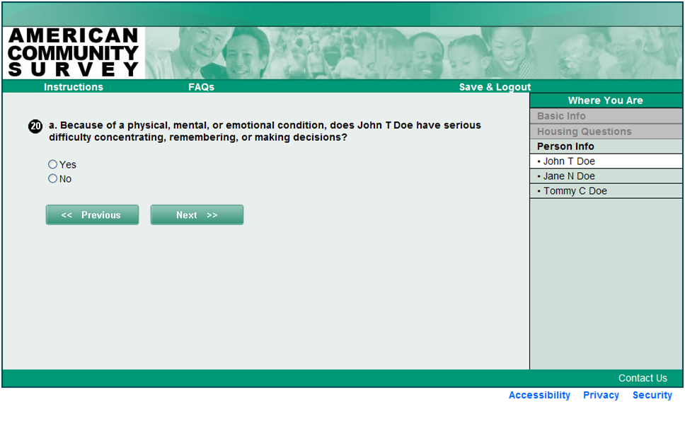 Internet Questionnaire Screenshot Guide
