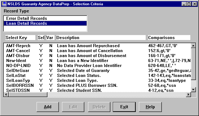 While error reports are useful for identifying types of errors and specific records with errors in your database, loan detail reports are useful for establishing the full contents of those records that contain errors. DataPrep’s select and sort options will help you identify and categorize the records that appear in loan detail reports.