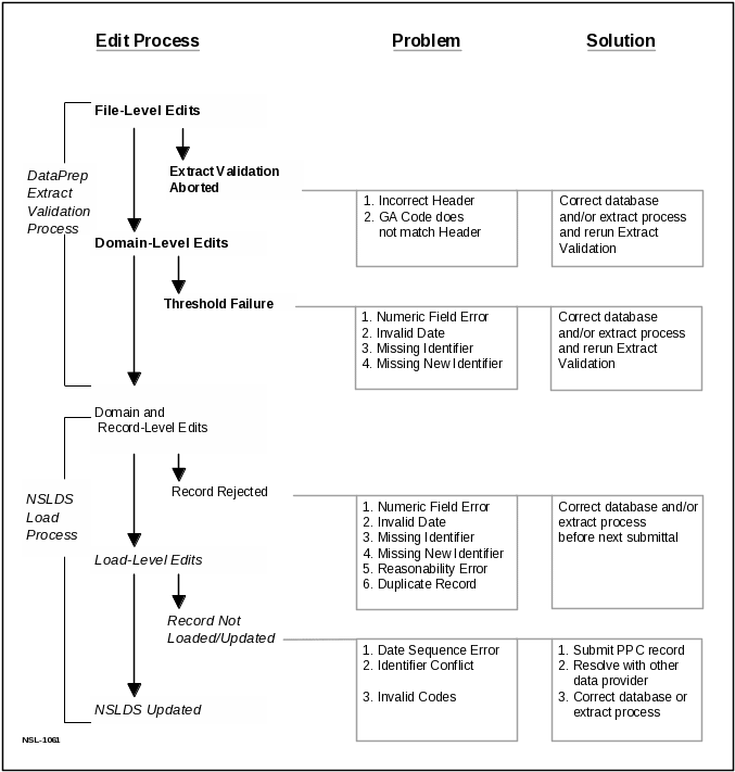 It is essential that you correct your database or extract procedures rather than editing or otherwise massaging the Database Extract file. If you don’t, the errors will remain in your database and reappear in your next Database Extract file, which will then be out of sync with the correct data loaded onto NSLDS as a result of your previous submittal.