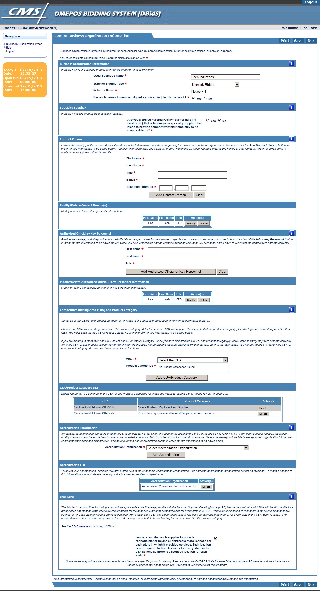 Requests for Bids (RFB) for Durable Medical Equipment, Prosthetics, Orthotics, and Supplies (DMEPOS) Competitive Bidding Program