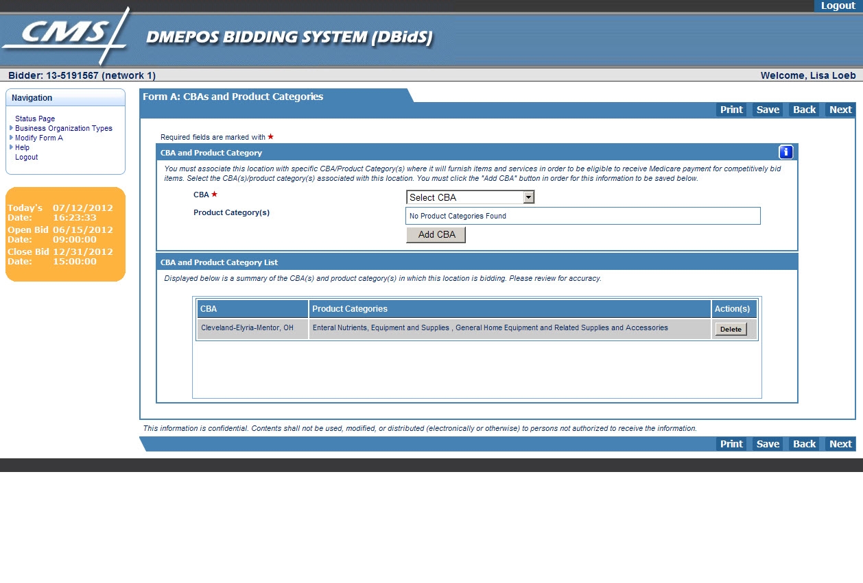 Requests for Bids (RFB) for Durable Medical Equipment, Prosthetics, Orthotics, and Supplies (DMEPOS) Competitive Bidding Program