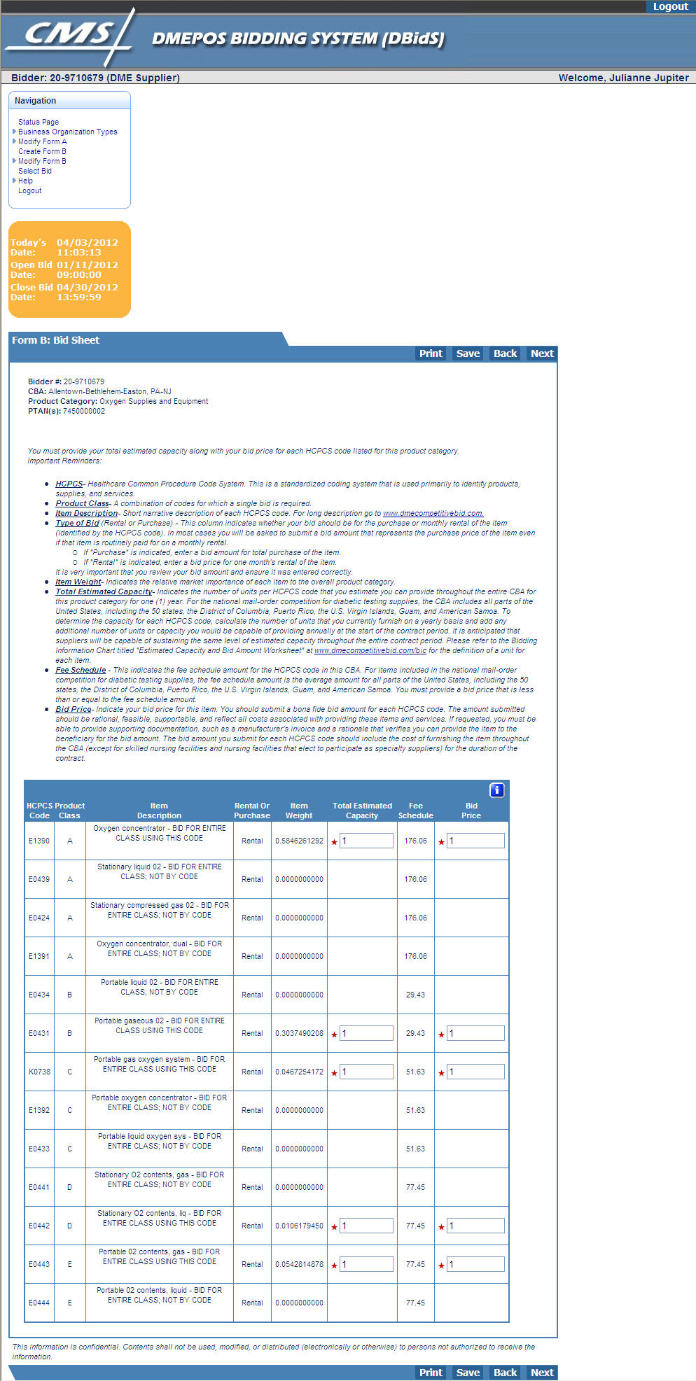 Requests for Bids (RFB) for Durable Medical Equipment, Prosthetics, Orthotics, and Supplies (DMEPOS) Competitive Bidding Program