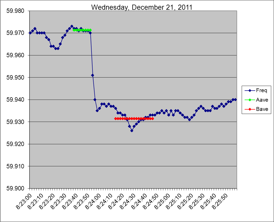 | 7) | Contingent Balancing Authority Adjustment: - Data for Value A is the pre-contingency scan rate generation (+MW values) from the contingent unit(s). - Data for Value B is usually 0 MW, but may be the demand (-MW values) that remains on the system that was "netted" out by the now offline generation. |
