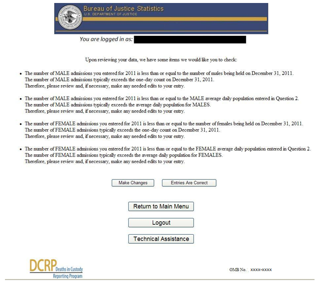 On-screen Reporting Capabilities. Upon completion of each jail or prison form, agencies receive an on-screen report that summarizes their responses. This enhancement was implemented after respondents relayed to BJS that a summary of the data responses would allow respondents to assess the completeness of their submission while allowing them to review and edit their entries prior to submission (see Figure 6).