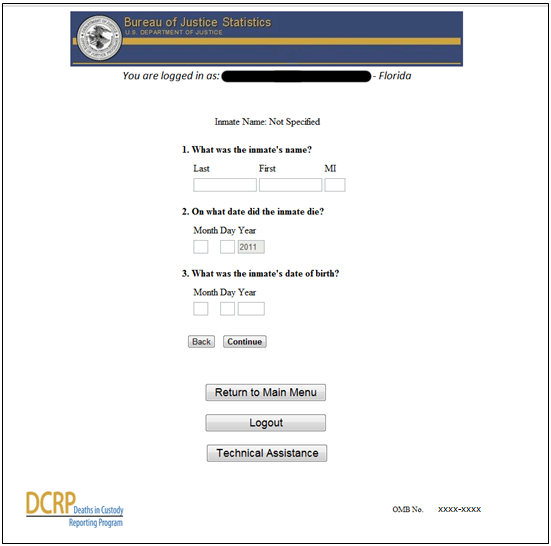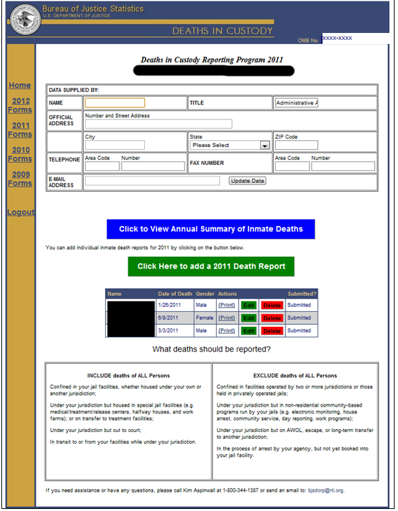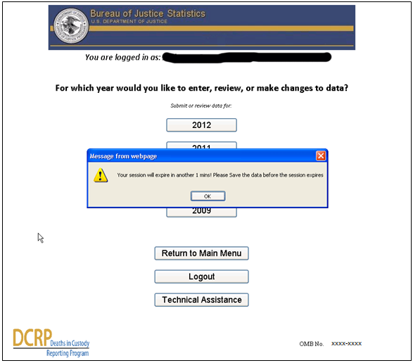 Figure 1. Screenshot of Reporting Year Web Page for Prison and Jail Collection