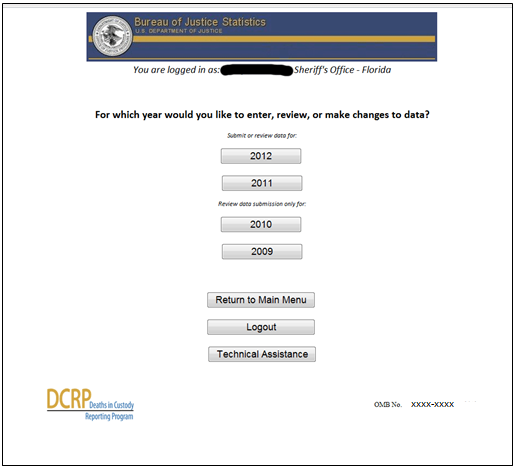 Figure 1. Screenshot of Reporting Year Web Page for Prison and Jail Collection