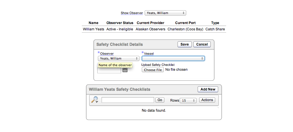 Provider input/forms in NWFSC Observer Logistics web-based database system