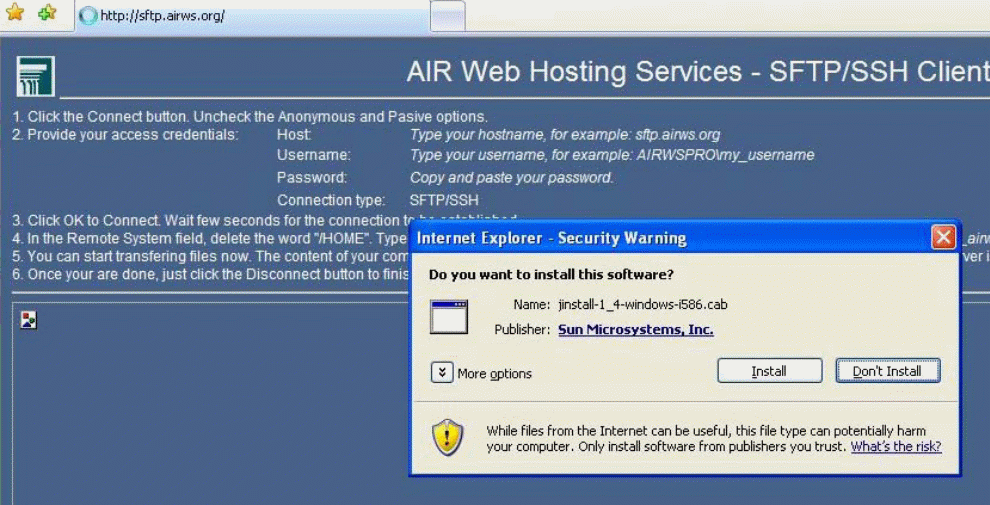 1. Open your internet browser and type http://sftp.airws.org or http://sftp.astprojects.org in the address field, depending on which website you were given in the email.