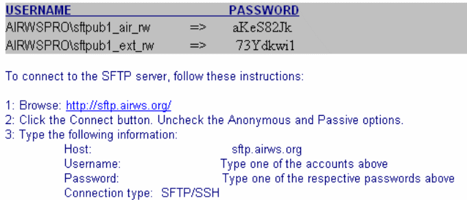 AIR will establish secure FTP site for data sharing |
