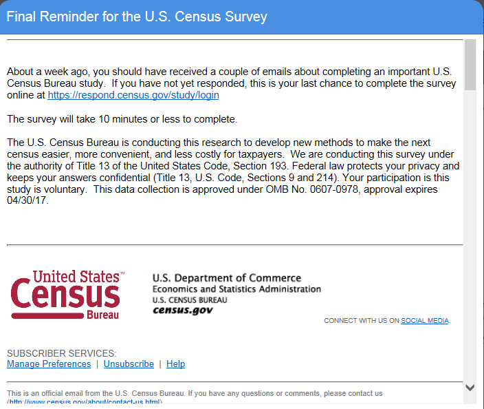 Figure 26: Screen when survey is closed out or when have previously entered survey