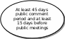 NOAA, through the U.S. Environmental Protection Agency, announces the availability of the DEIS/DMP in the Federal Register. The date of publication begins the 45-day comment period on the DEIS/DMP. The state and NOAA hold a public hearing(s) 30-45 days after the announcement. NOAA also publishes a notice of the public hearing(s) in the Federal Register 15 days prior to the hearing. Concurrently, the state publishes a notice of the public hearing (s) in the local media.