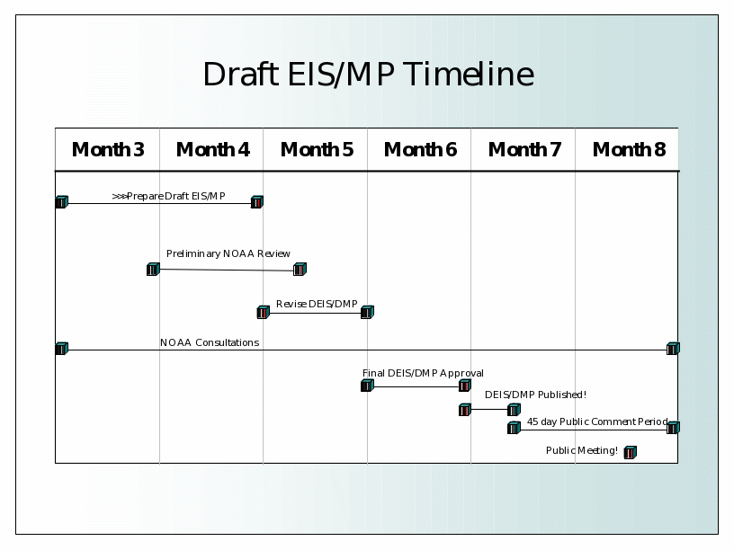 • NOAA works with the state to respond to comments on the DEIS/DMP.