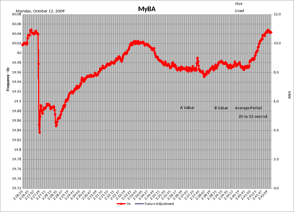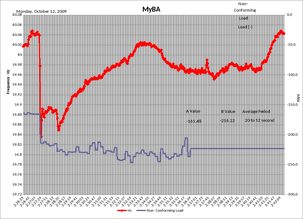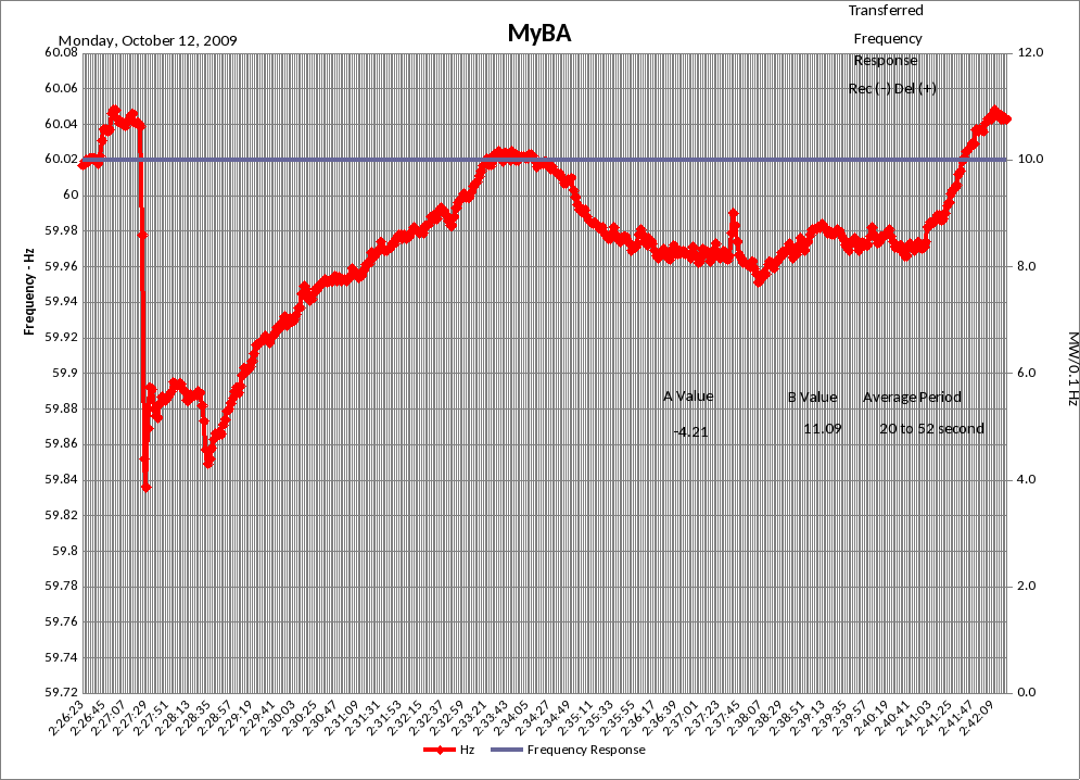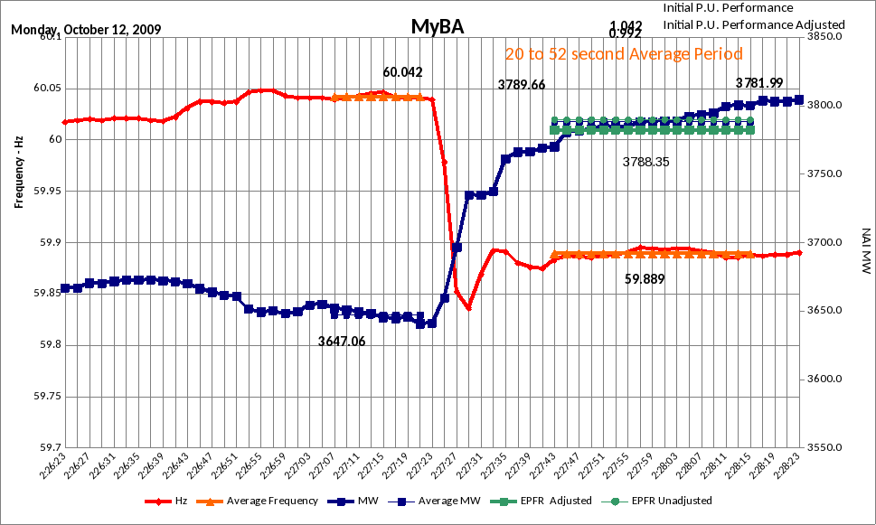 | It is important that the pre-event frequency average to NOT contain frequency data of the event, "Average Frequency" trend to the left of center of the graph. | ||||||||||||||||